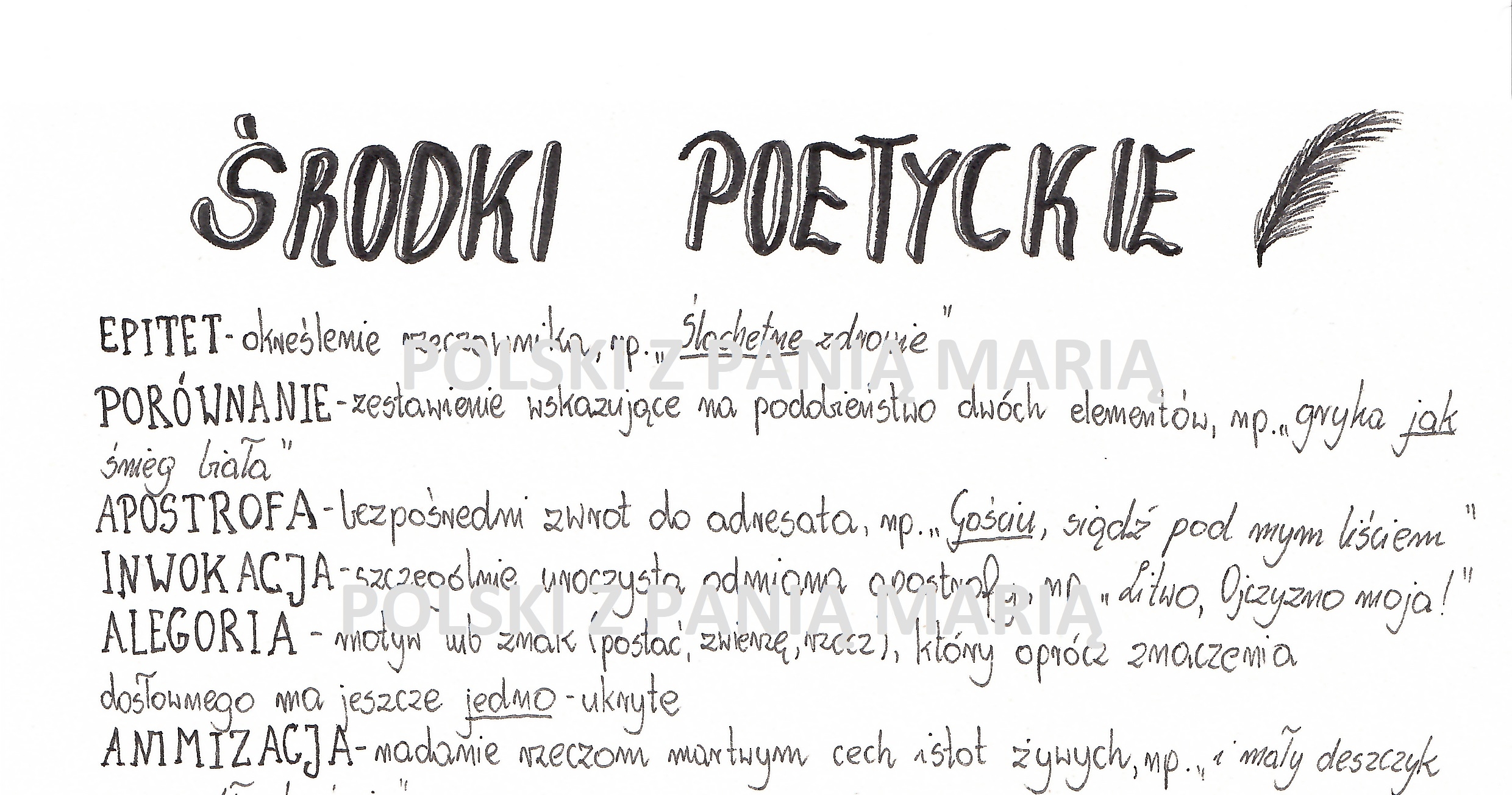 Notatka zawiera listę środków poetyckich, które powinien znać każdy ósmoklasista.