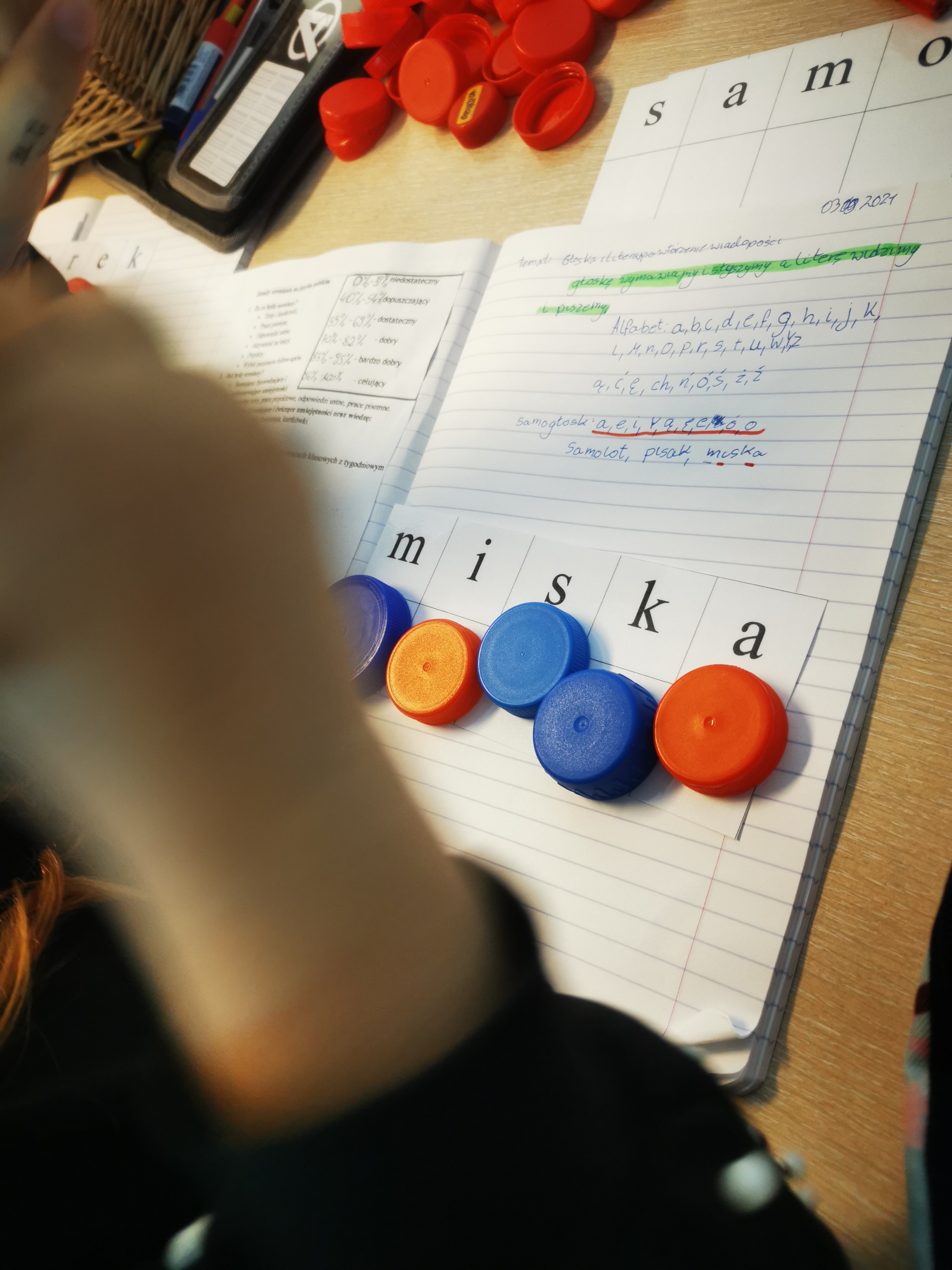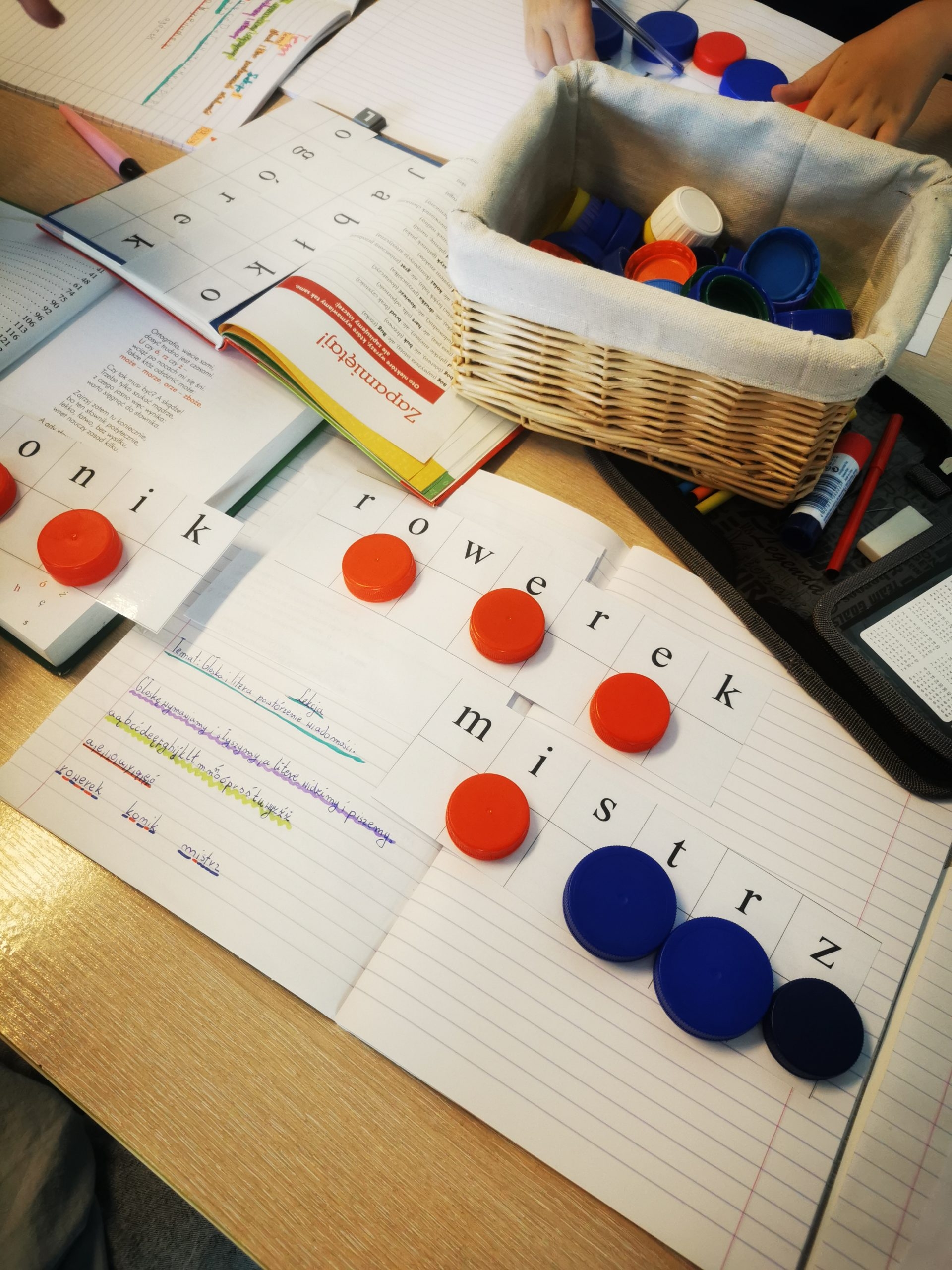 Samogłoski, spółgłoski - plansza do nakrętek