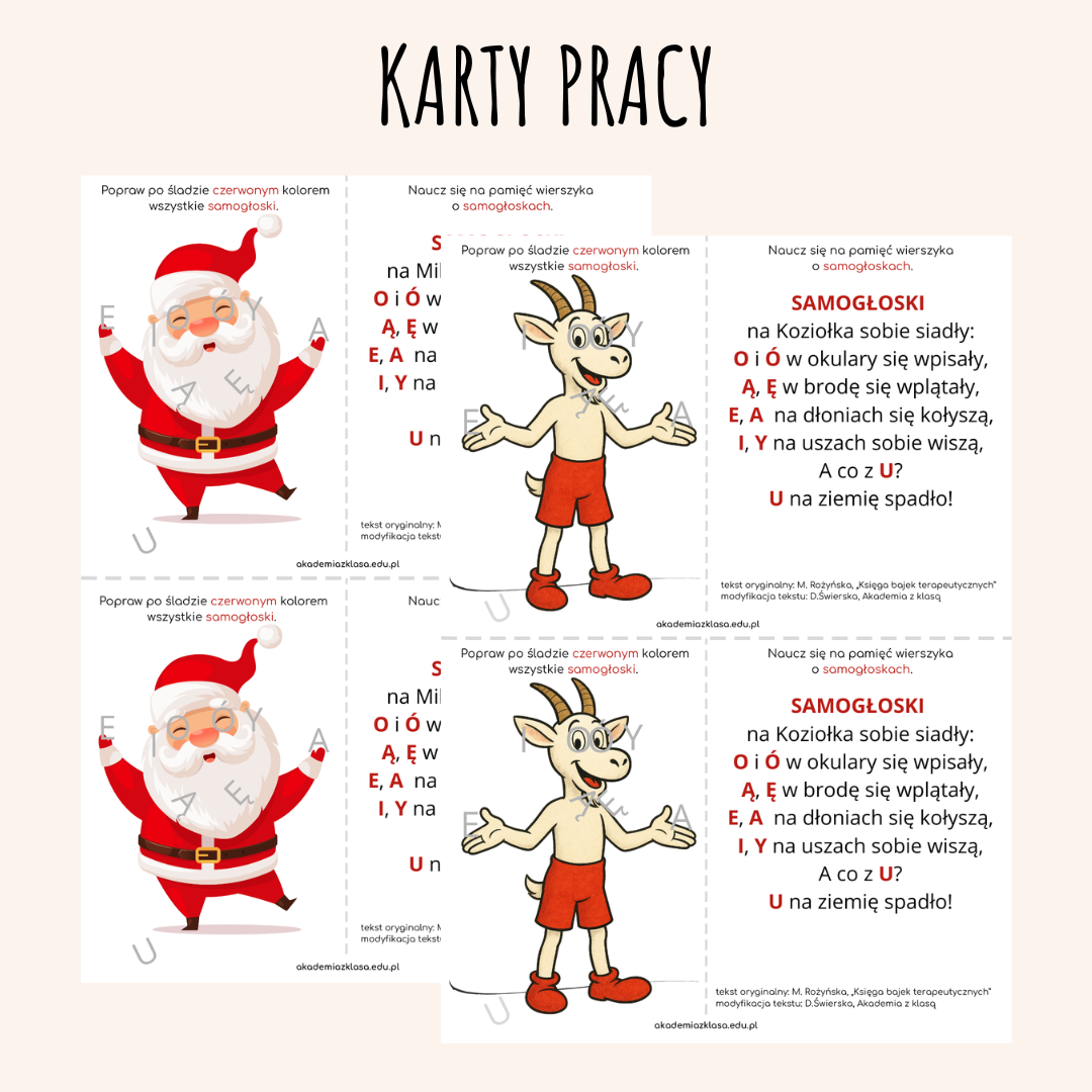 SAMOGŁOSKI - WIERSZYKI MNEMOTECHNIKI UŁATWIAJĄCE NAUKĘ SAMOGŁOSEK! Wersja uniwersalna i mikołajkowa!