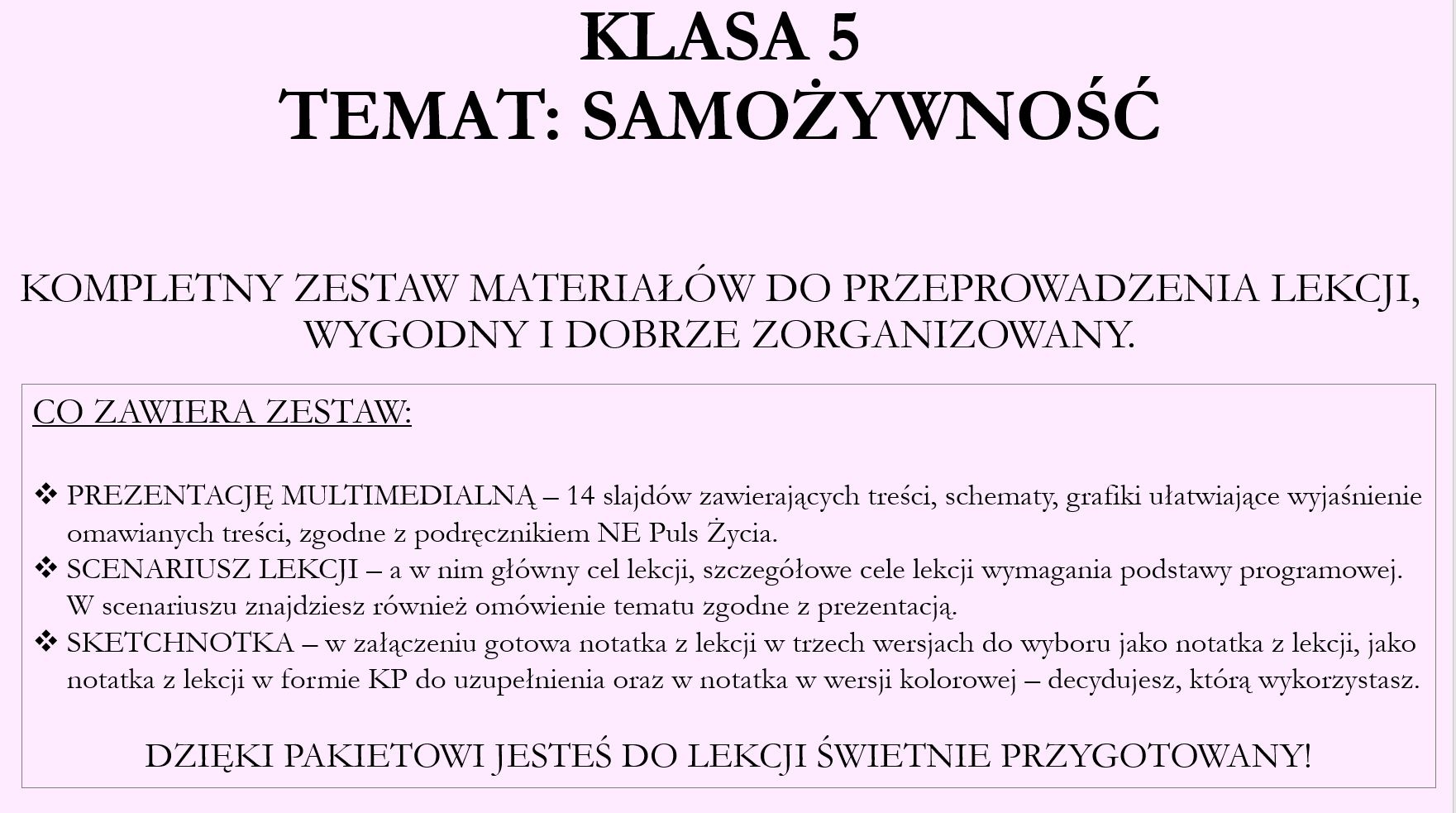 Jestem absolwentką Uniwersytetu Łódzkiego wydziału biologii. Biologia to jedna z nauk przyrodniczych, która ma dużo treści wspólnych z innymi naukami, dlatego ukończyłam również studia podyplomowe z przyrody i geografii. Obecnie uczę w szkole podstawowej tych trzech przedmiotów czyli biologii, przyrody i geografii. Wychodzę z założenia, że człowiek jako inteligentna część tego świata powinien poznać podstawy jego funkcjonowania. Od jakiegoś czasu fascynuje mnie sketchnoting. Rysuję notatki graficzne dla uczniów jako gotowe wklejki z lekcji bądź KP do uzupełnienia. Wierzę, że pomagają one w zrozumieniu przerabianego materiału. Tworzę również bazę materiałów dla nauczycieli. Wiem ile czasu wymaga kompletne przygotowanie prezentacji, kart pracy czy materiałów dodatkowych, dlatego też dzielę się tym z innymi. W materiałach dostępne są prezentacje, KP jako sketchotki albo gotowe do wklejenia albo jak KP do uzupełnienie, pokolorowania i wklejenia. Dostępne są /będą gotowe scenariusze lekcji, dzięki temu w bardzo krótkim czasie, można przypomnieć sobie najważniejsze kwestie i być świetnie przygotowanym do lekcji. Dodatkowo znajdziesz KP przygotowane w wordzie do edycji, możesz je zmieniać i modyfikować według własnych potrzeb. Decydując się na pakiet otrzymujesz komplet materiałów do konkretnej lekcji. Zyskujesz czas, który możesz przeznaczyć na inne aktywności. Zaczynam również tworzyć społeczność na Instagramie i Facebook biologia_podstawy.