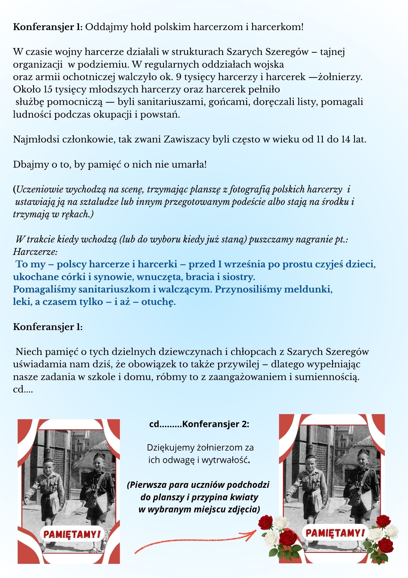 📜 I. Scenariusz inscenizacji historycznej rozpisany na dwóch prowadzących (możesz wprowadzić więcej czytających).