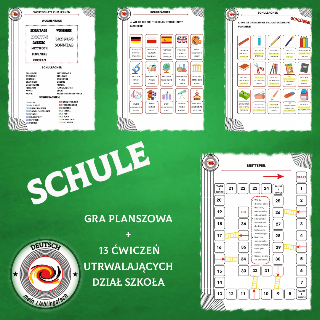 Materiał Edukacyjny: "Schule" - 13 Ćwiczeń i Gra Planszowa do Utrwalenia Słownictwa