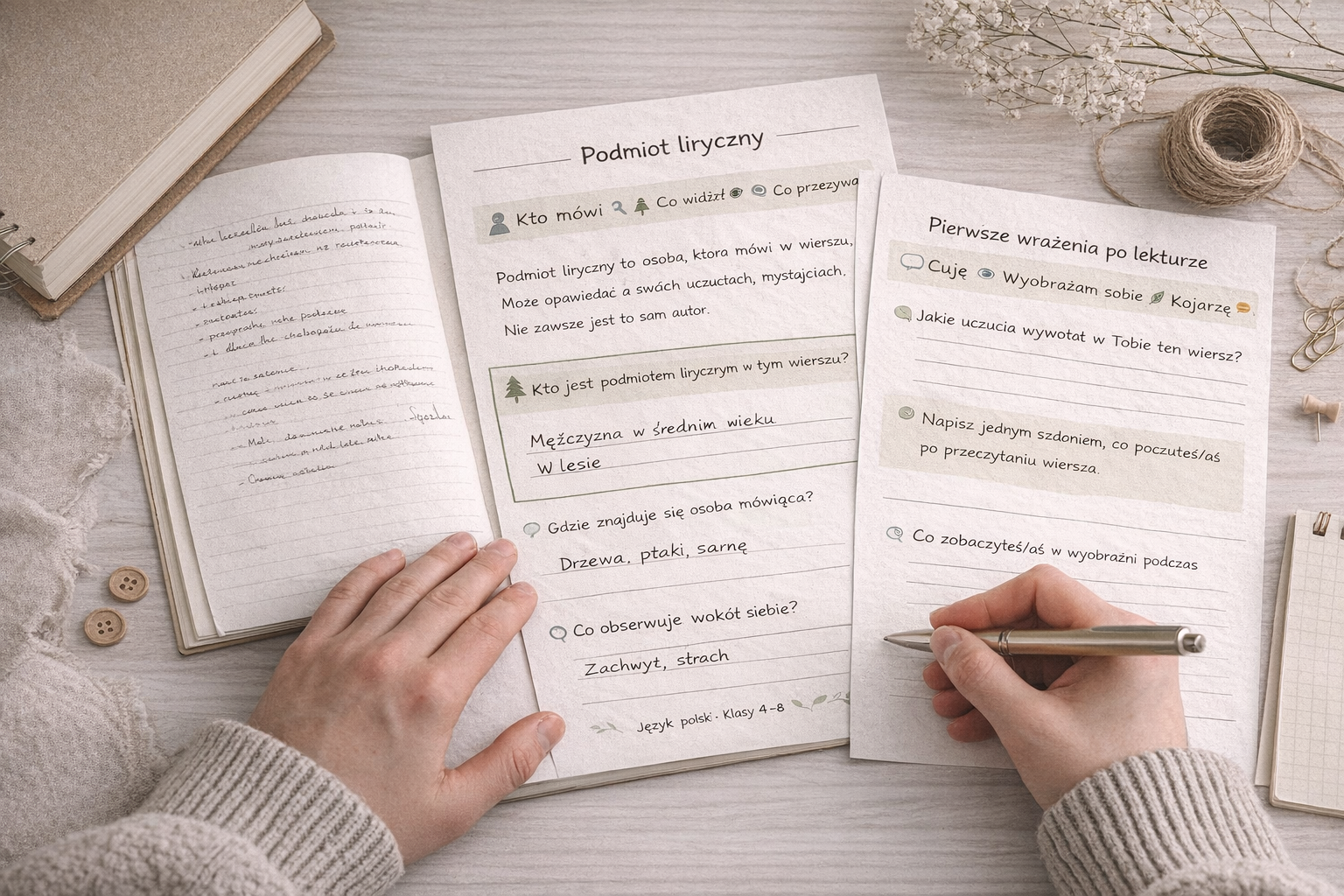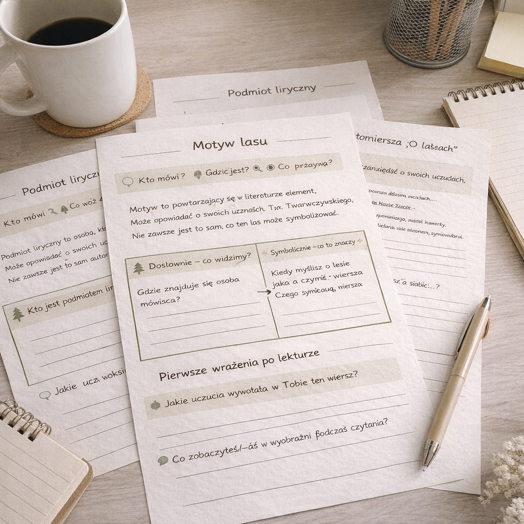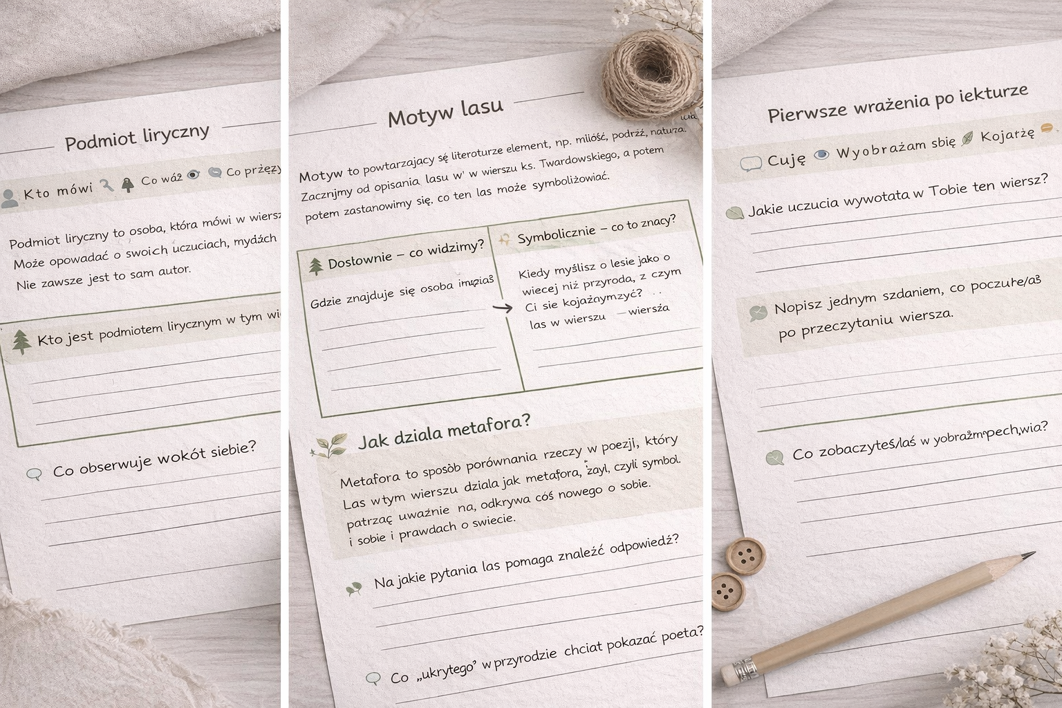 Szukasz gotowego, pięknie zaprojektowanego materiału, który prowadzi ucznia krok po kroku od pierwszego wrażenia po głęboką interpretację wiersza?