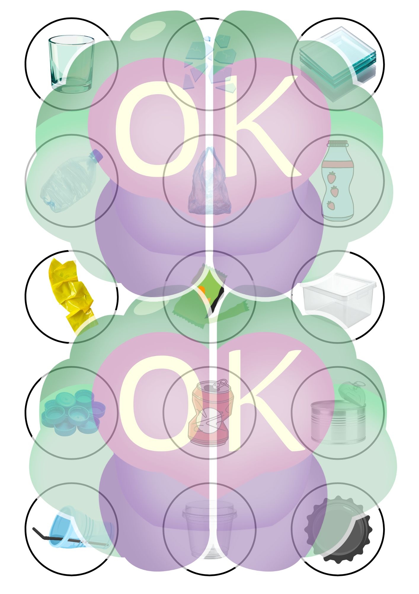 6 koszy do segregacji odpadów – każdy na oddzielnej stronie:
