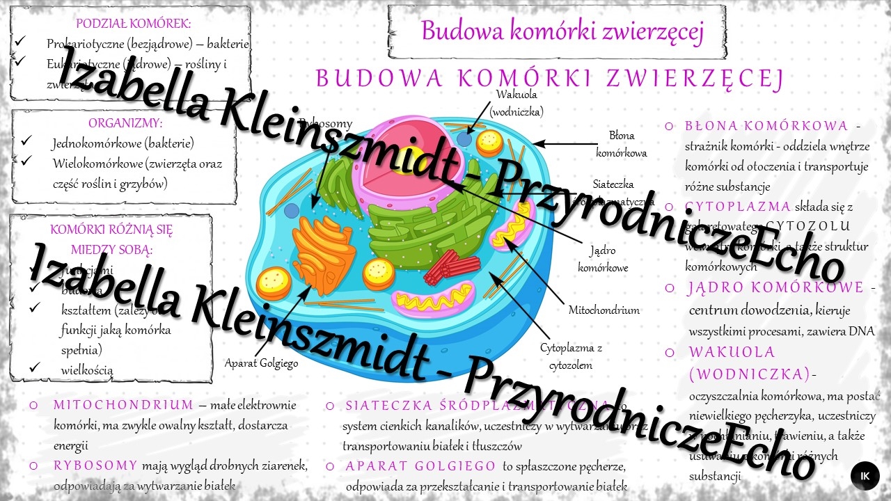 Witajcie Nazywam się Izabella Kleinszmidt (PrzyrodniczeEcho). Jestem nauczycielem przyrody, biologii, geografii i chemii w szkole podstawowej w Pomysku Wielkim. Uwielbiam mój zawód i cieszę się, że robię w życiu to co kocham. Pasja dla nauczyciela jest bardzo ważna:). Prowadzę stronę PrzyrodniczeEcho na FB, nagrywam filmiki do lekcji, konstruuję prezentacje i lekcje multimedialne, escape roomy oraz sketchnotki i karty pracy w programie power point. Zapraszam na stronę internetową mojej szkoły, gdzie znajdują się (niektóre darmowe) opracowania lekcji do przyrody, biologii, geografii i chemii w SP. Adres strony internetowej: https://sppomyskwielki.edu.pl - zakładka - dla ucznia. Od niedawna zapraszam również na moją stronę internetową: https://ikleinszmidt.wixsite.com/przyrodniczeecho Zapraszam do korzystania z mojej pracy:) Bardzo proszę również czytać opisy, aby wiedzieć, jaki materiał znajduje się w danym pliku. Zachęcam do kontaktu w razie jakichś pytań lub błędów w pomocach - brakach lub literówkach-wszystko można naprawić? Jakich materiałów możecie Państwo oczekiwać? SKETCHNOTKA - notatka kompletna z określonego tematu KARTA PRACY - zazwyczaj sketchnotka z wykropkowanymi miejscami PREZENTACJA MULTIMEDIALNA - kompletne wiadomości do odpowiedniego tematu wraz z grafiką i tekstem - zarówno w power point jak i genially - tę koniecznie należy zapisać na swoim koncie! LEKCJA MULTIMEDIALNA - pomysł na przeprowadzenie lekcji - taki "tok lekcji" - skrócony scenariusz ZESTAWY - proszę się wczytać w opis, informuję co mieści się w konkretnym zestawie:) Pozdrawiam cieplutko:)