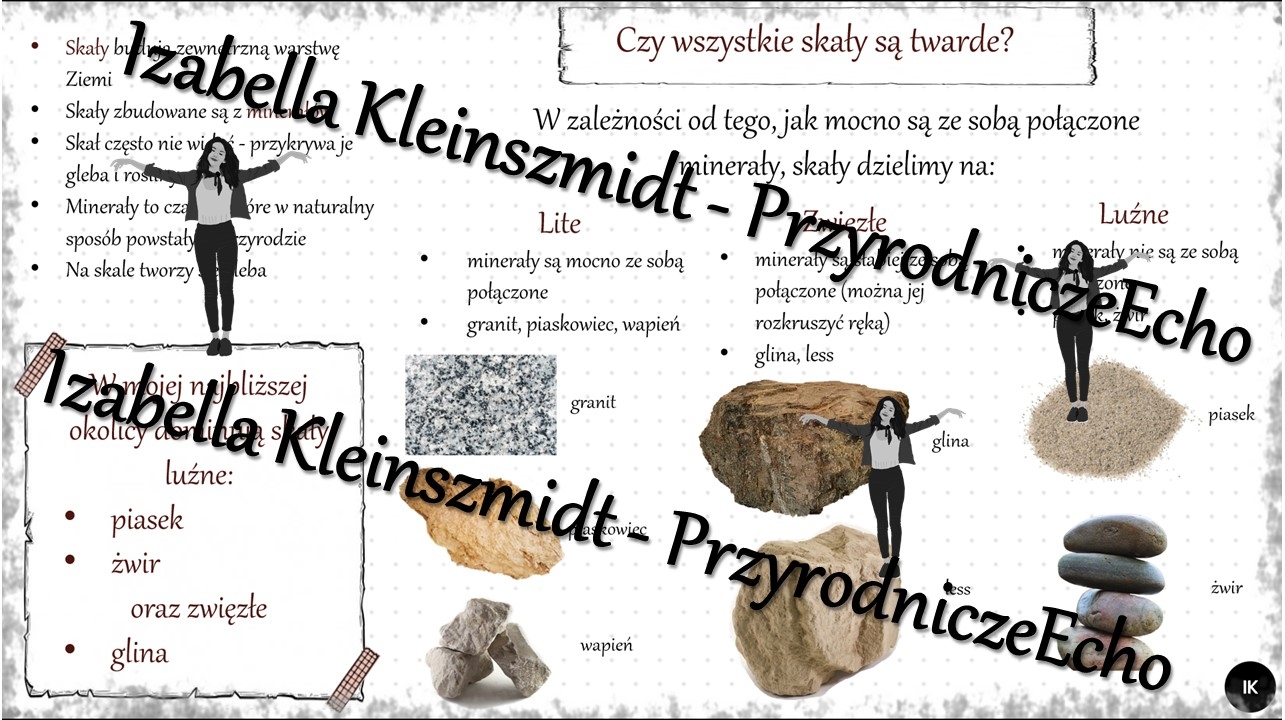 Witajcie Nazywam się Izabella Kleinszmidt (PrzyrodniczeEcho). Jestem nauczycielem przyrody, biologii, geografii i chemii w szkole podstawowej w Pomysku Wielkim. Uwielbiam mój zawód i cieszę się, że robię w życiu to co kocham. Pasja dla nauczyciela jest bardzo ważna:). Prowadzę stronę PrzyrodniczeEcho na FB, nagrywam filmiki do lekcji, konstruuję prezentacje i lekcje multimedialne, escape roomy oraz sketchnotki i karty pracy w programie power point. Zapraszam na stronę internetową mojej szkoły, gdzie znajdują się (niektóre darmowe) opracowania lekcji do przyrody, biologii, geografii i chemii w SP. Adres strony internetowej: https://sppomyskwielki.edu.pl - zakładka - dla ucznia. Od niedawna zapraszam również na moją stronę internetową: https://ikleinszmidt.wixsite.com/przyrodniczeecho Zapraszam do korzystania z mojej pracy:) Bardzo proszę również czytać opisy, aby wiedzieć, jaki materiał znajduje się w danym pliku. Zachęcam do kontaktu w razie jakichś pytań lub błędów w pomocach - brakach lub literówkach-wszystko można naprawić? Jakich materiałów możecie Państwo oczekiwać? SKETCHNOTKA - notatka kompletna z określonego tematu KARTA PRACY - zazwyczaj sketchnotka z wykropkowanymi miejscami PREZENTACJA MULTIMEDIALNA - kompletne wiadomości do odpowiedniego tematu wraz z grafiką i tekstem - zarówno w power point jak i genially - tę koniecznie należy zapisać na swoim koncie! LEKCJA MULTIMEDIALNA - pomysł na przeprowadzenie lekcji - taki "tok lekcji" - skrócony scenariusz ZESTAWY - proszę się wczytać w opis, informuję co mieści się w konkretnym zestawie:) Pozdrawiam cieplutko:)