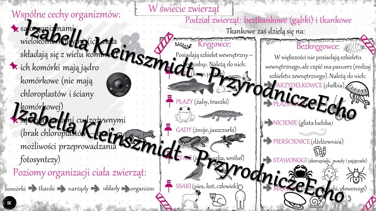 Sketchnotka - notatka „Królestwo zwierząt” wykonana w power point do edycji. Biologia 6; „Świat zwierząt”