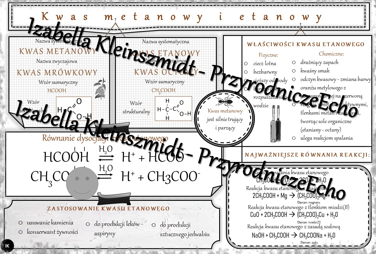 Sketchnotka - notatka „Kwas metanowy i etanowy” wykonana w power point do edycji. Chemia 8, „Pochodne węglowodorów”
