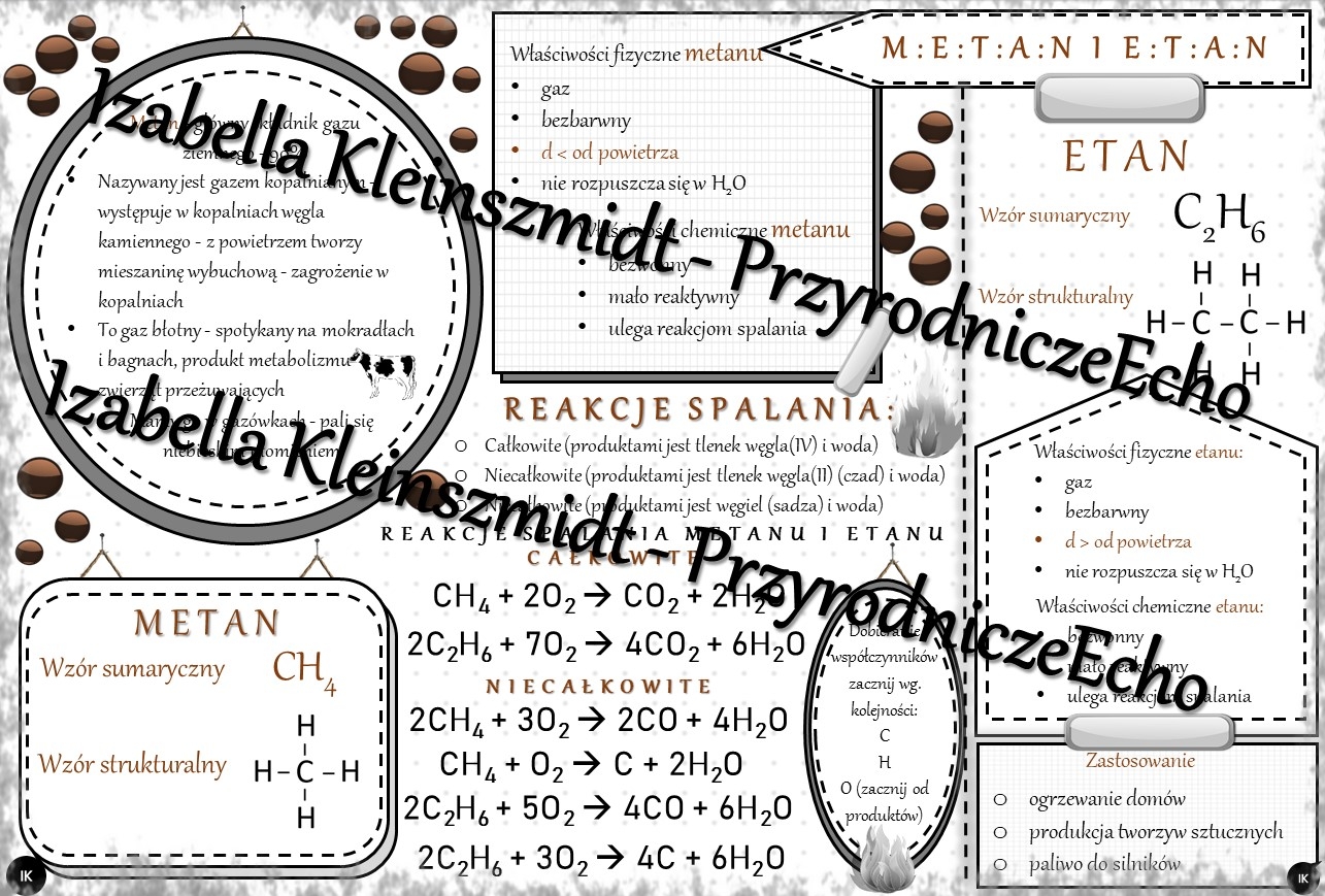 Sketchnotka - notatka „Metan i etan” wykonana w power point do edycji. Chemia 8, „Węglowodory”