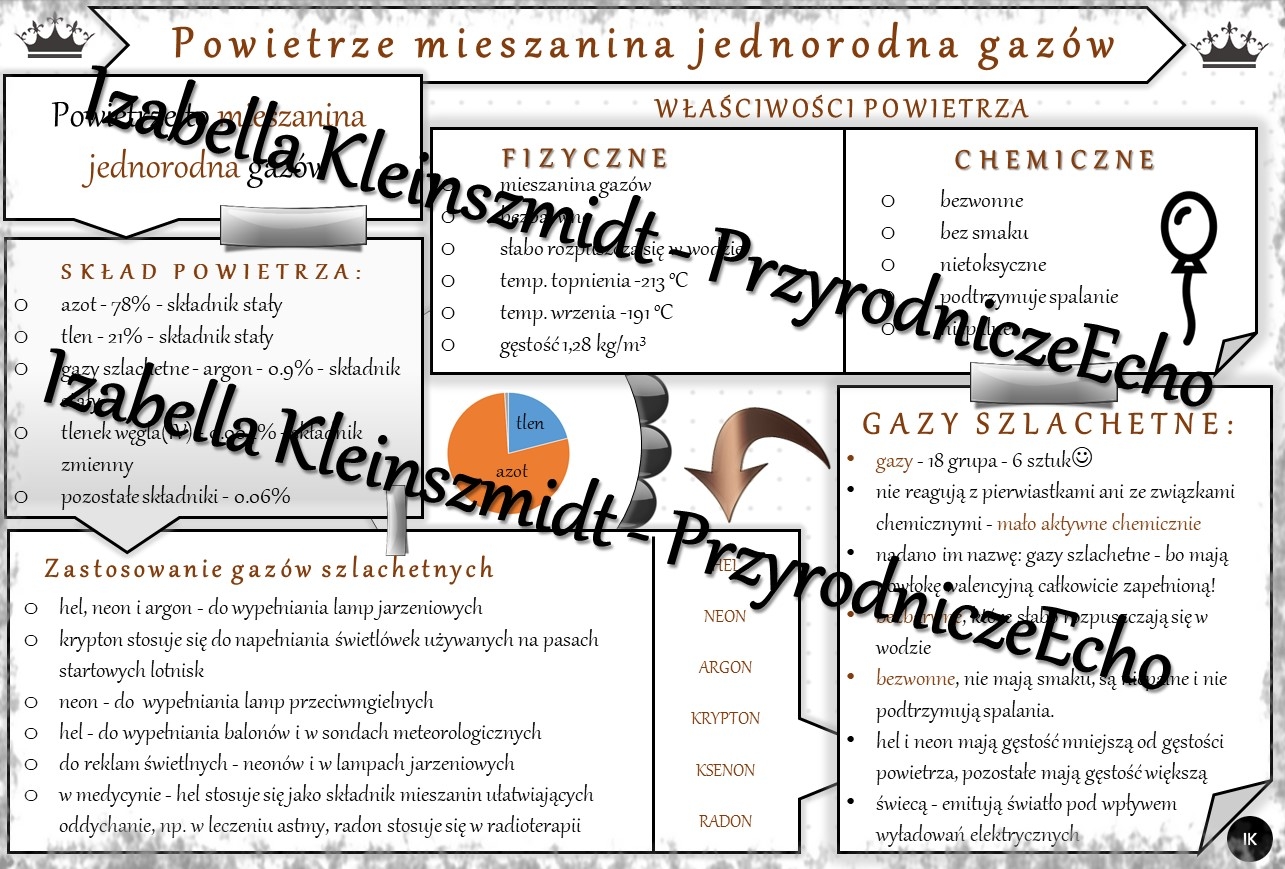 Sketchnotka - notatka „Powietrze, gazy szlachetne” wykonana w power point do edycji. Chemia 7, „Gazy i tlenki”