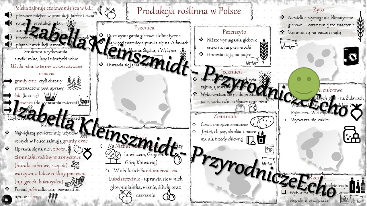 Sketchnotka - notatka „Produkcja roślinna” wykonana w power point do edycji. Geografia 7; „Rolnictwo i przemysł”