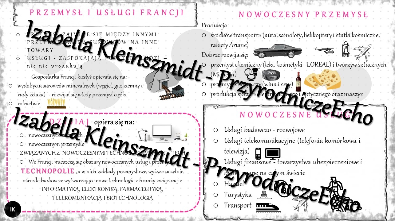Sketchnotka - notatka „Przemysł i usługi w Francji” wykonana w power point do edycji. Geografia 6; „Gospodarka Europy”