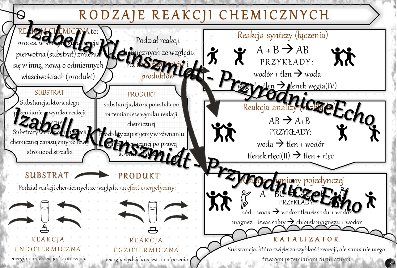 Sketchnotka - notatka „Rodzaje reakcji chemicznych” wykonana w power point do edycji. Chemia 7, „Ważne prawa”