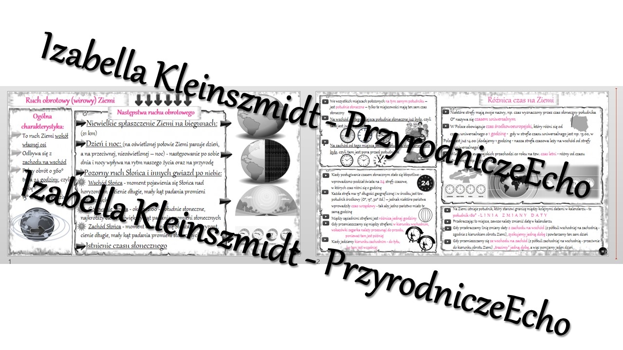 Witajcie Nazywam się Izabella Kleinszmidt (PrzyrodniczeEcho). Jestem nauczycielem przyrody, biologii, geografii i chemii w szkole podstawowej w Pomysku Wielkim. Uwielbiam mój zawód i cieszę się, że robię w życiu to co kocham. Pasja dla nauczyciela jest bardzo ważna:). Prowadzę stronę PrzyrodniczeEcho na FB, nagrywam filmiki do lekcji, konstruuję prezentacje i lekcje multimedialne, escape roomy oraz sketchnotki i karty pracy w programie power point. Zapraszam na stronę internetową mojej szkoły, gdzie znajdują się (niektóre darmowe) opracowania lekcji do przyrody, biologii, geografii i chemii w SP. Adres strony internetowej: https://sppomyskwielki.edu.pl - zakładka - dla ucznia. Od niedawna zapraszam również na moją stronę internetową: https://ikleinszmidt.wixsite.com/przyrodniczeecho Zapraszam do korzystania z mojej pracy:) Bardzo proszę również czytać opisy, aby wiedzieć, jaki materiał znajduje się w danym pliku. Zachęcam do kontaktu w razie jakichś pytań lub błędów w pomocach - brakach lub literówkach-wszystko można naprawić? Jakich materiałów możecie Państwo oczekiwać? SKETCHNOTKA - notatka kompletna z określonego tematu KARTA PRACY - zazwyczaj sketchnotka z wykropkowanymi miejscami PREZENTACJA MULTIMEDIALNA - kompletne wiadomości do odpowiedniego tematu wraz z grafiką i tekstem - zarówno w power point jak i genially - tę koniecznie należy zapisać na swoim koncie! LEKCJA MULTIMEDIALNA - pomysł na przeprowadzenie lekcji - taki "tok lekcji" - skrócony scenariusz ZESTAWY - proszę się wczytać w opis, informuję co mieści się w konkretnym zestawie:) Pozdrawiam cieplutko:)