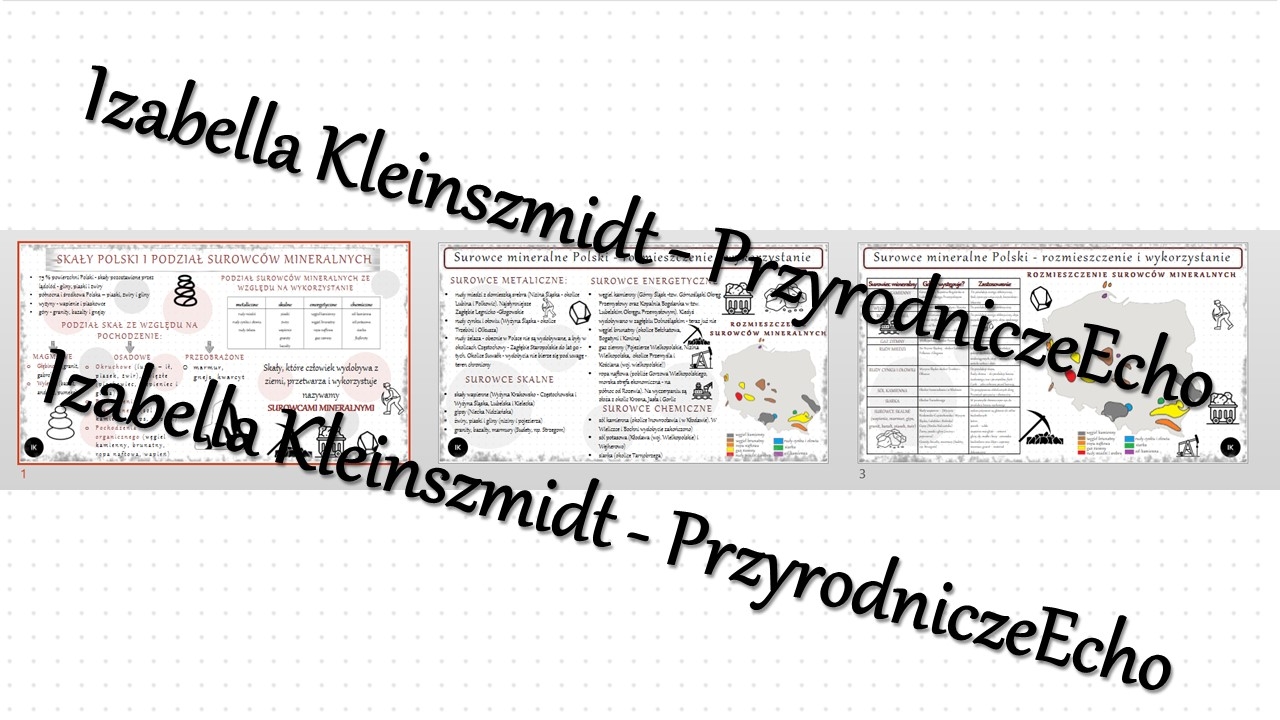 Witajcie Nazywam się Izabella Kleinszmidt (PrzyrodniczeEcho). Jestem nauczycielem przyrody, biologii, geografii i chemii w szkole podstawowej w Pomysku Wielkim. Uwielbiam mój zawód i cieszę się, że robię w życiu to co kocham. Pasja dla nauczyciela jest bardzo ważna:). Prowadzę stronę PrzyrodniczeEcho na FB, nagrywam filmiki do lekcji, konstruuję prezentacje i lekcje multimedialne, escape roomy oraz sketchnotki i karty pracy w programie power point. Zapraszam na stronę internetową mojej szkoły, gdzie znajdują się (niektóre darmowe) opracowania lekcji do przyrody, biologii, geografii i chemii w SP. Adres strony internetowej: https://sppomyskwielki.edu.pl - zakładka - dla ucznia. Od niedawna zapraszam również na moją stronę internetową: https://ikleinszmidt.wixsite.com/przyrodniczeecho Zapraszam do korzystania z mojej pracy:) Bardzo proszę również czytać opisy, aby wiedzieć, jaki materiał znajduje się w danym pliku. Zachęcam do kontaktu w razie jakichś pytań lub błędów w pomocach - brakach lub literówkach-wszystko można naprawić? Jakich materiałów możecie Państwo oczekiwać? SKETCHNOTKA - notatka kompletna z określonego tematu KARTA PRACY - zazwyczaj sketchnotka z wykropkowanymi miejscami PREZENTACJA MULTIMEDIALNA - kompletne wiadomości do odpowiedniego tematu wraz z grafiką i tekstem - zarówno w power point jak i genially - tę koniecznie należy zapisać na swoim koncie! LEKCJA MULTIMEDIALNA - pomysł na przeprowadzenie lekcji - taki "tok lekcji" - skrócony scenariusz ZESTAWY - proszę się wczytać w opis, informuję co mieści się w konkretnym zestawie:) Pozdrawiam cieplutko:)