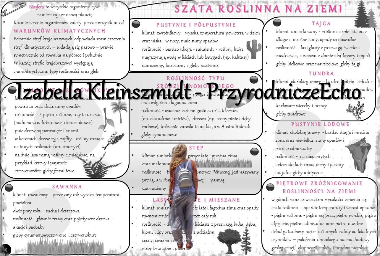 Zapraszam do zakupu notatki wykonanej w power point, ale tutaj otrzymujecie Państwo w pdf -  „Szata roślinna na kuli ziemskiej” Geografia 1, dział VII „Pedosfera i biosfera”, „Oblicza geografii” – zakres podstawowy. Grafika pochodzi z pixabay