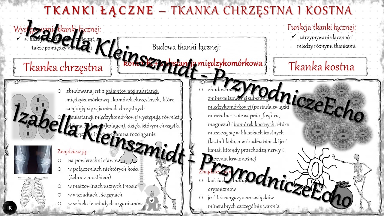 Sketchnotka - notatka „Tkanka łączna -tkanka chrzęstna i kostna” wykonana w power point do edycji. Biologia 6; „Świat zwierząt”