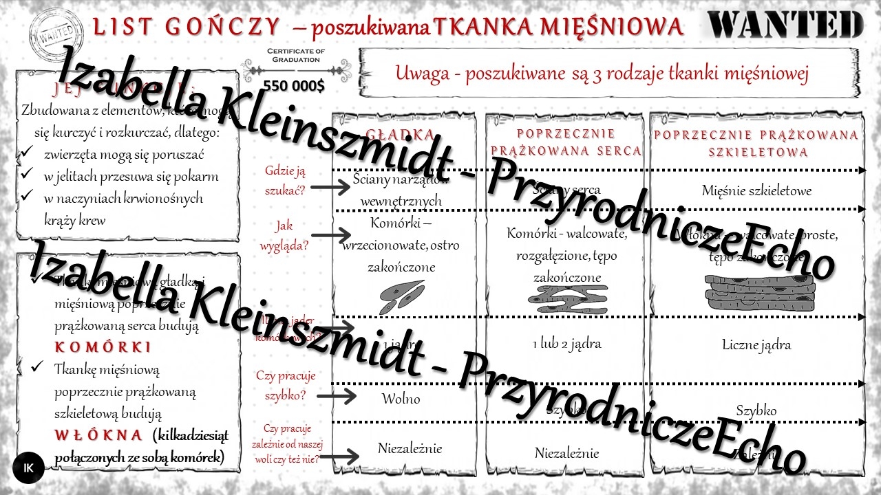 Sketchnotka - notatka „Tkanka mięśniowa” wykonana w power point do edycji. Biologia 6; „Świat zwierząt”