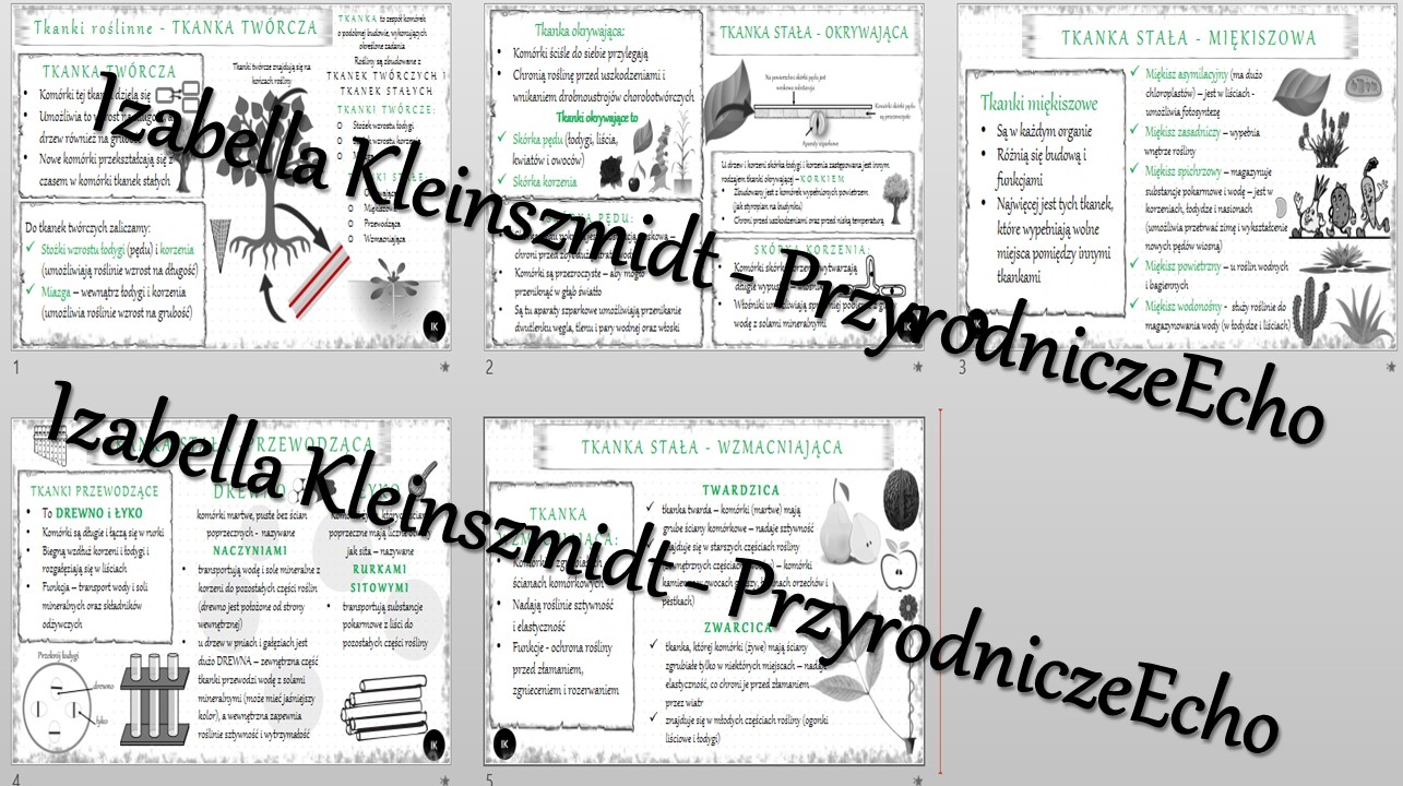Sketchnotka - notatka „Tkanki roślinne” wykonana w power point do edycji. Biologia 5; „Tkanki i organy roślinne”