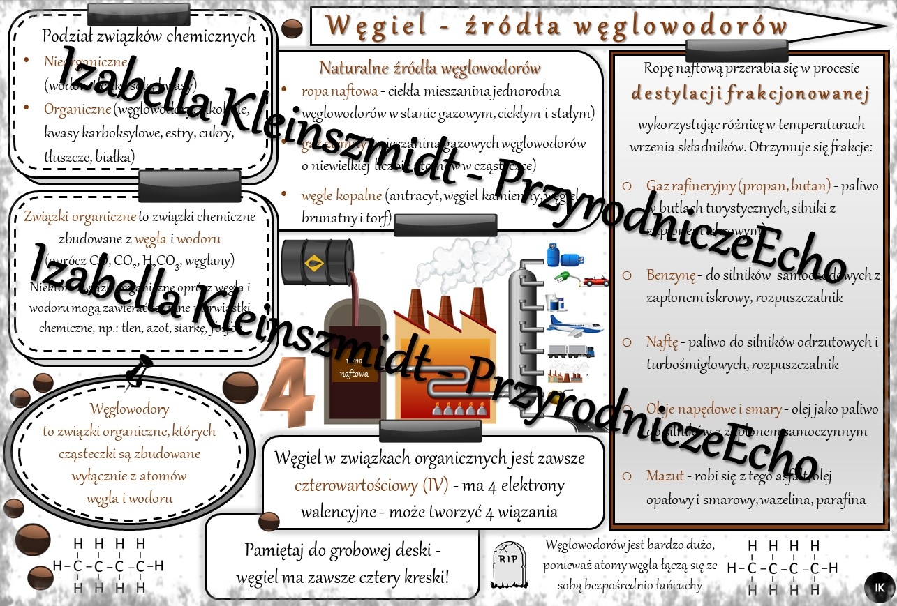 Sketchnotka - notatka „Węgiel, źródła węglowodorów” wykonana w power point do edycji. Chemia 8, „Węglowodory”