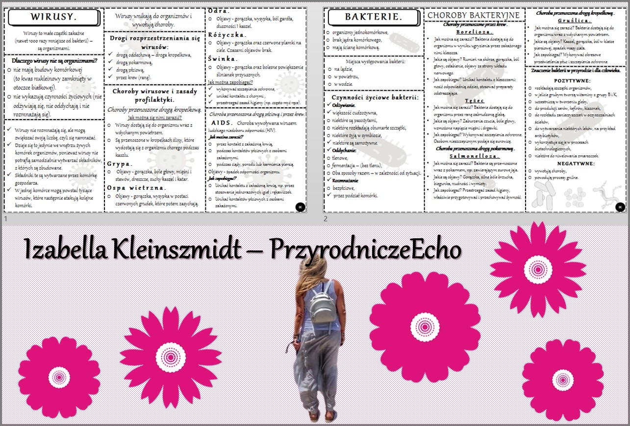 Sketchnotka/książeczka/notatka/wklejka/ściąga dla ucznia i przypomnienie dla nauczyciela/edukacja domowa. Temat „Wirusy i bakterie”. Materiał w pdf. Biologia 5, dział „Wirusy, bakterie, protisty i grzyby”. Nowość 2024/2025.