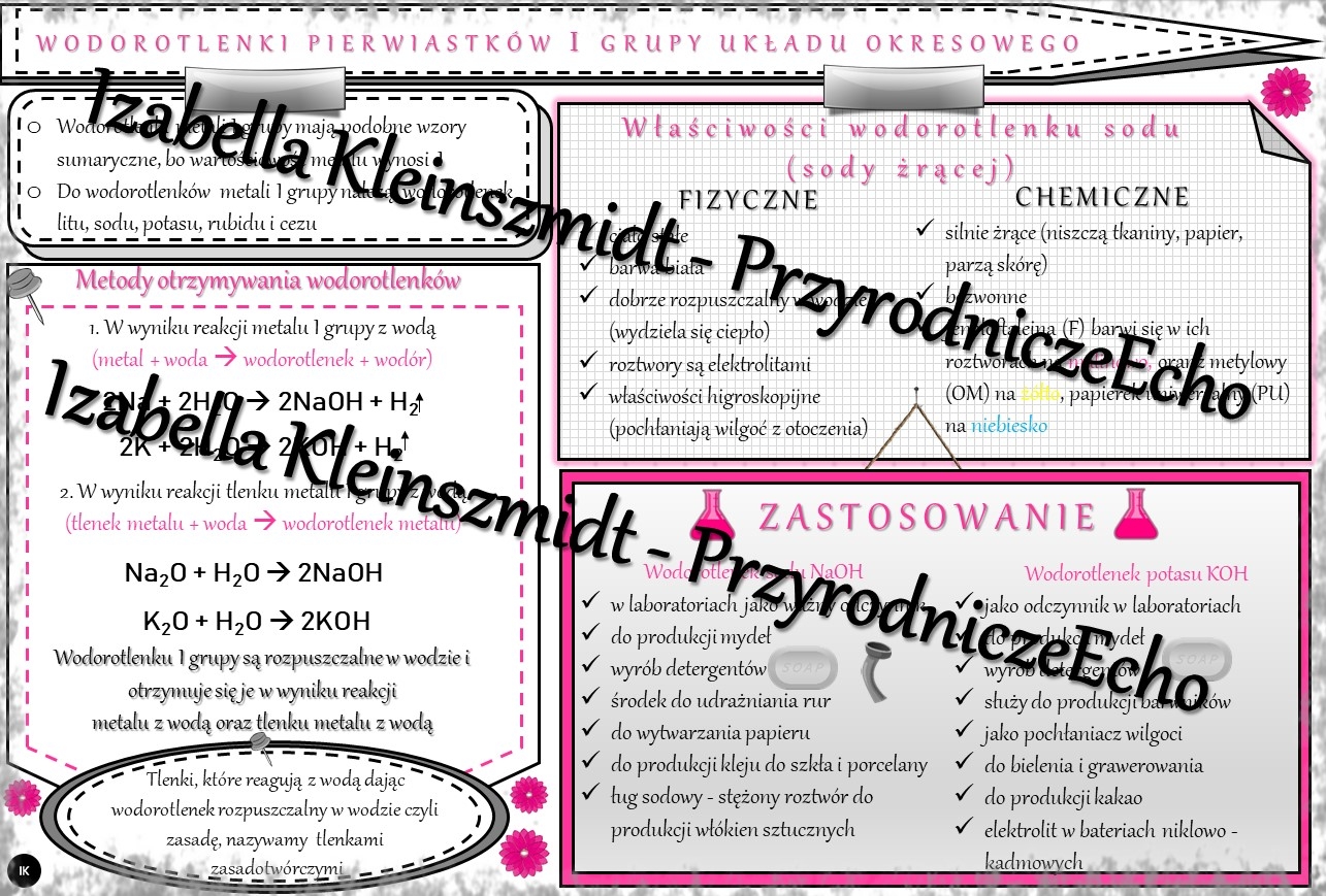 Sketchnotka - notatka „Wodorotlenki pierwiastków I grupy ukłądu okresowego” wykonana w power point do edycji. Chemia 7 lub 8, „Wodorotlenki”