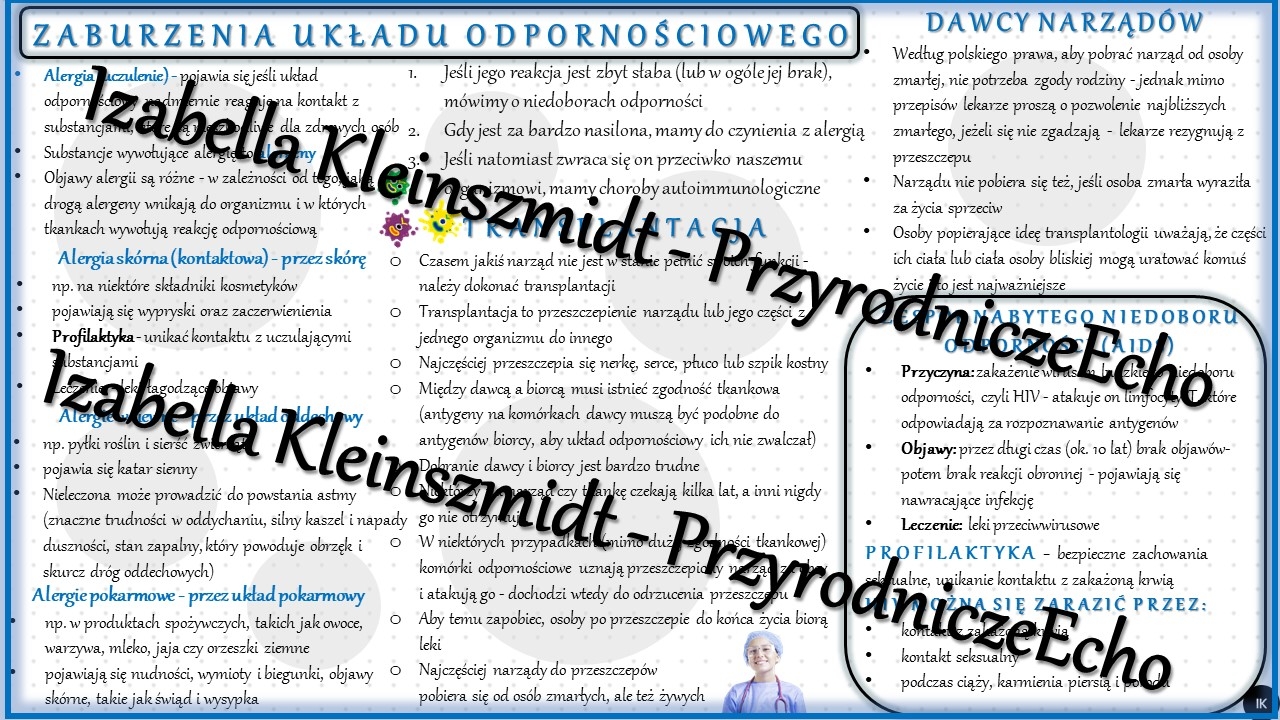 Sketchnotka - notatka „Zaburzenia funkcjonowanie układu odpornościowego” wykonana w power point do edycji. Biologia 7; „Układ krążenia”