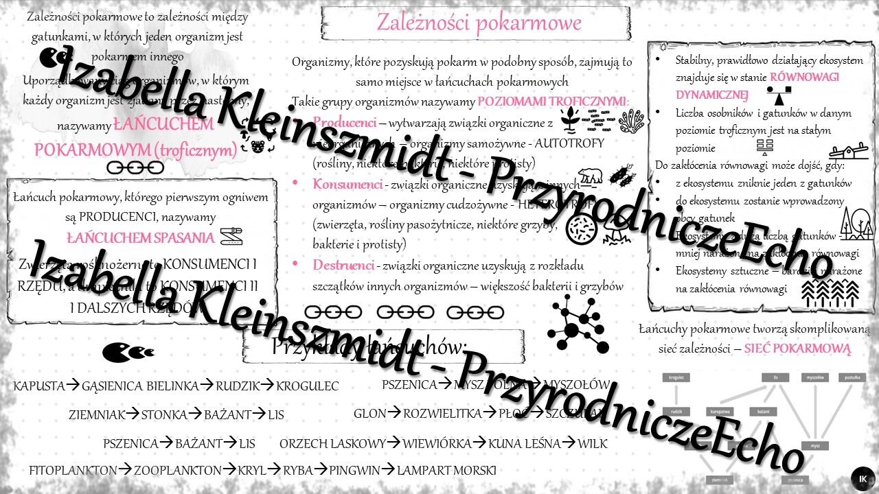 Sketchnotka - notatka „Zależności pokarmowe” wykonana w power point do edycji. Biologia 8; „EKOLOGIA”