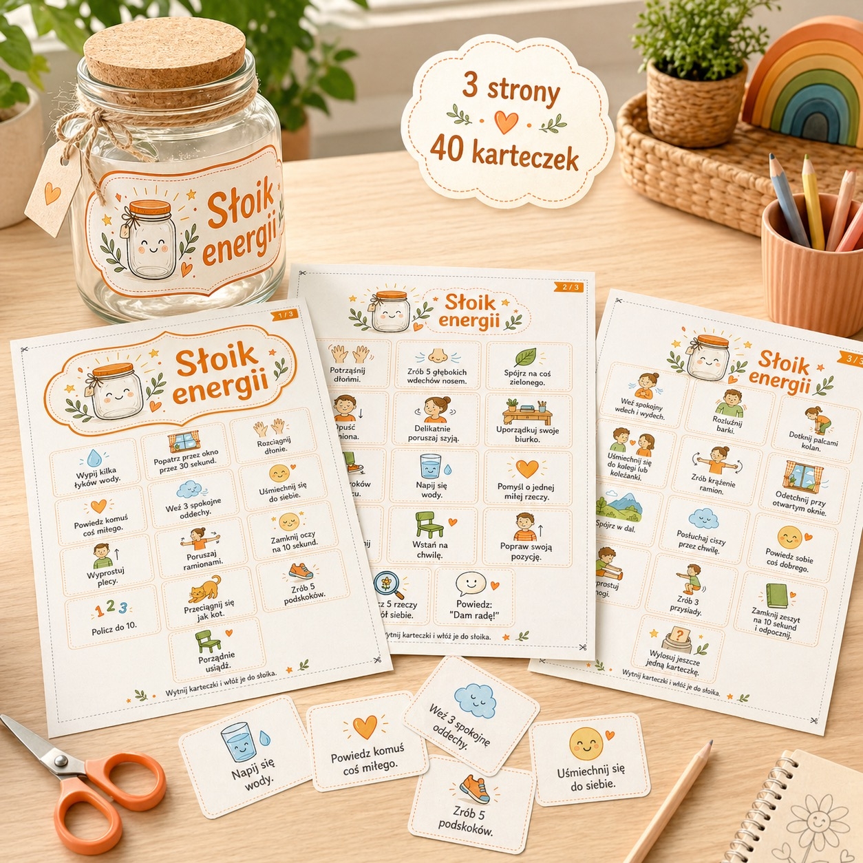 #słoikenergii #materiałydlanauczycieli #klasy1_8 #edukacjawczesnoszkolna #szkołapodstawowa #przerwaśródlekcyjna #dobrostanucznia #uważnośćwdzieci #regulacjaemocji #wyciszenie #koncentracja #pozytywnaklasa #nauczycielskieinspiracje #materiałydodruku #pomocedydaktyczne #godzinawychowawcza #klasowyrytuał #relakswdzieci #edukacja #nauczyciel