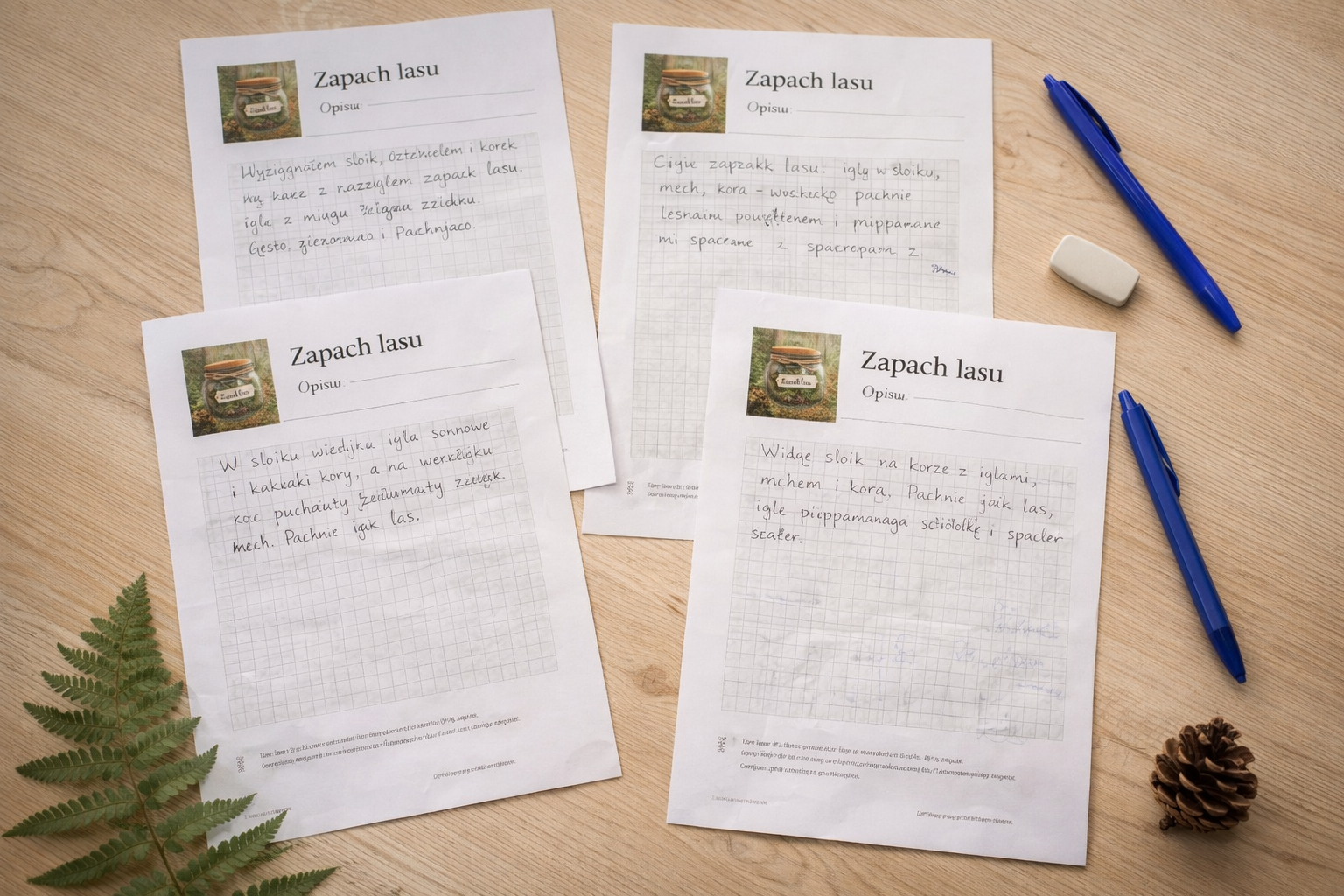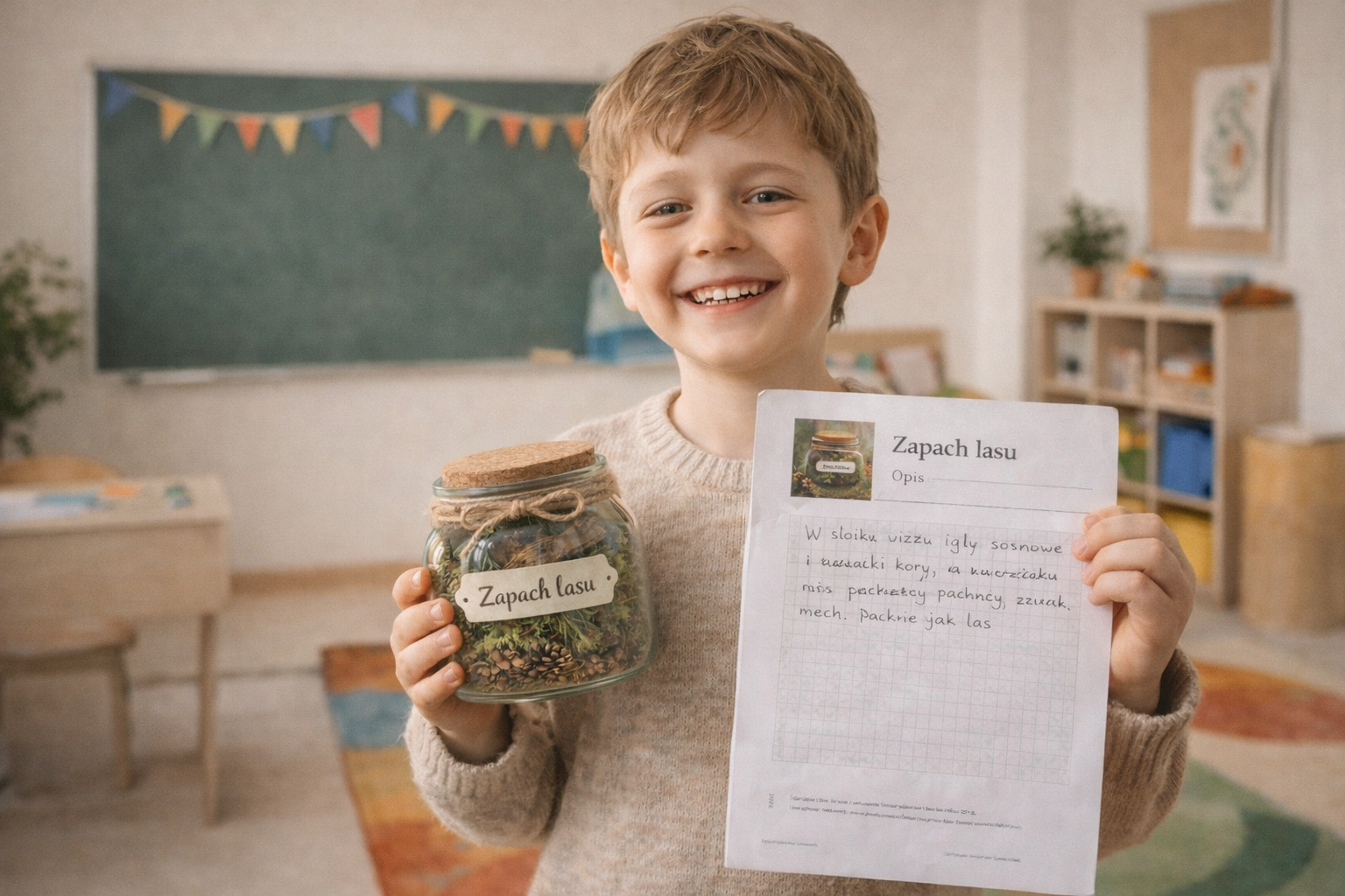 „Słoik zapachów lasu” to 8-stronicowy, interaktywny zestaw dydaktyczny (PDF), który wprowadza uczniów w świat natury, emocji i twórczego pisania.