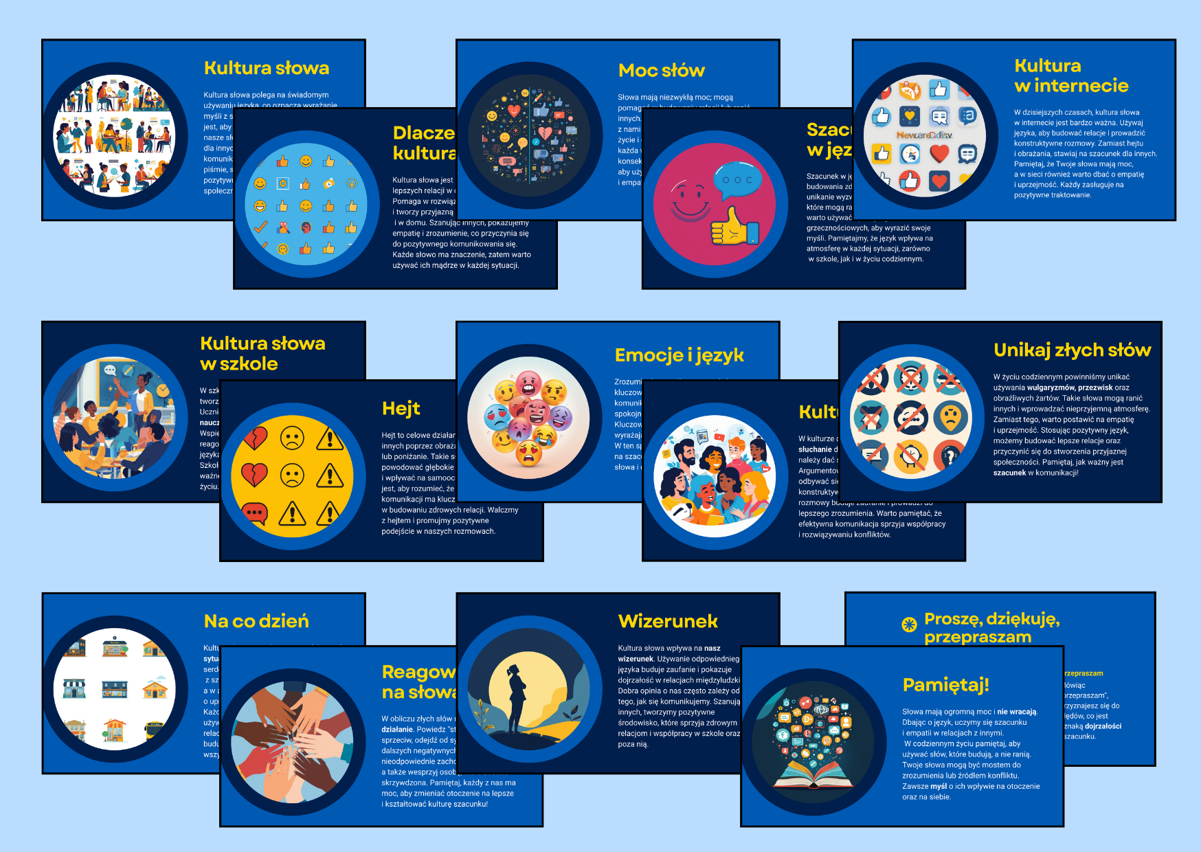 Prezentacja „Słowa mają moc” to gotowy materiał edukacyjny składający się z 17 przejrzystych i angażujących slajdów, które pomagają uczniom zrozumieć, jak ogromne znaczenie ma sposób, w jaki się komunikujemy.