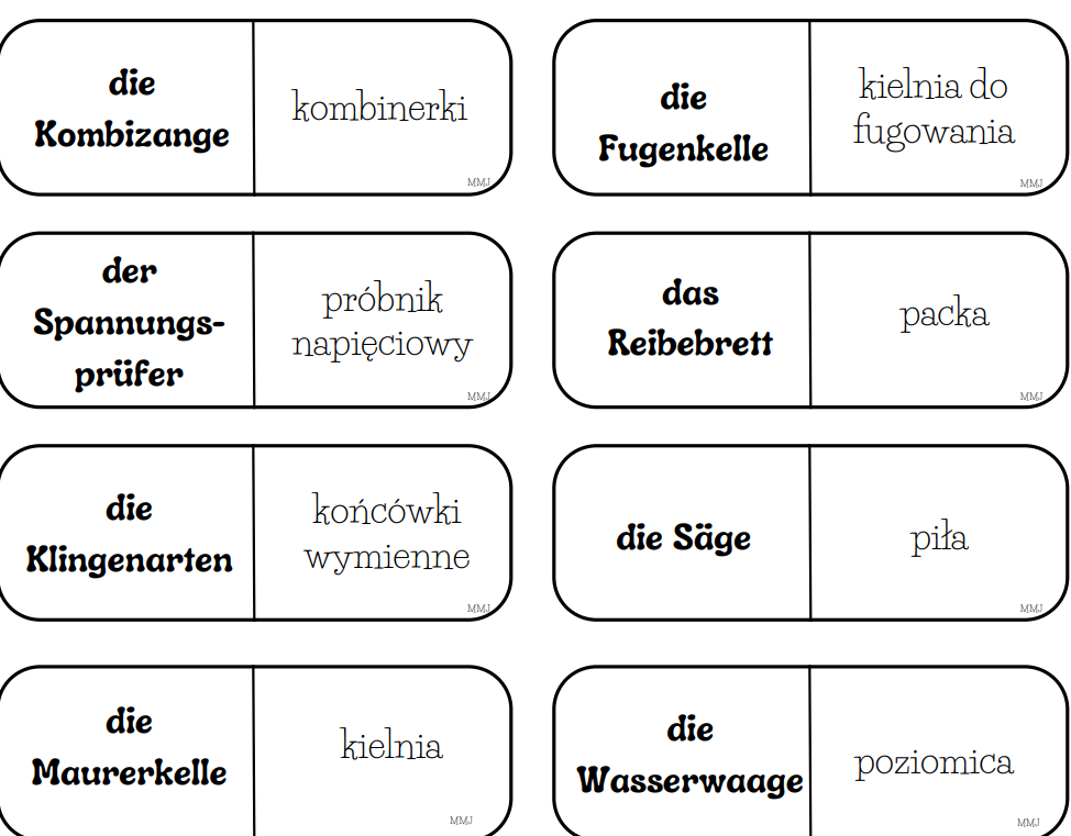 Fiszki do nauki języka niemieckiego -podstawowe słownictwo branżowe.