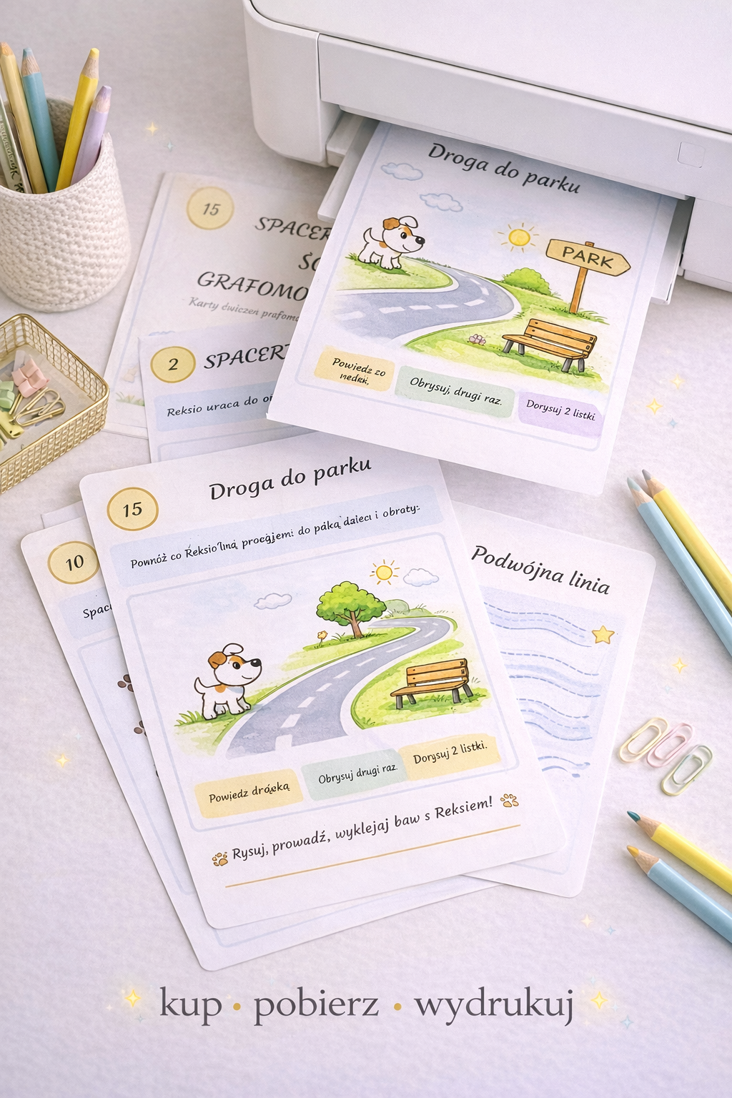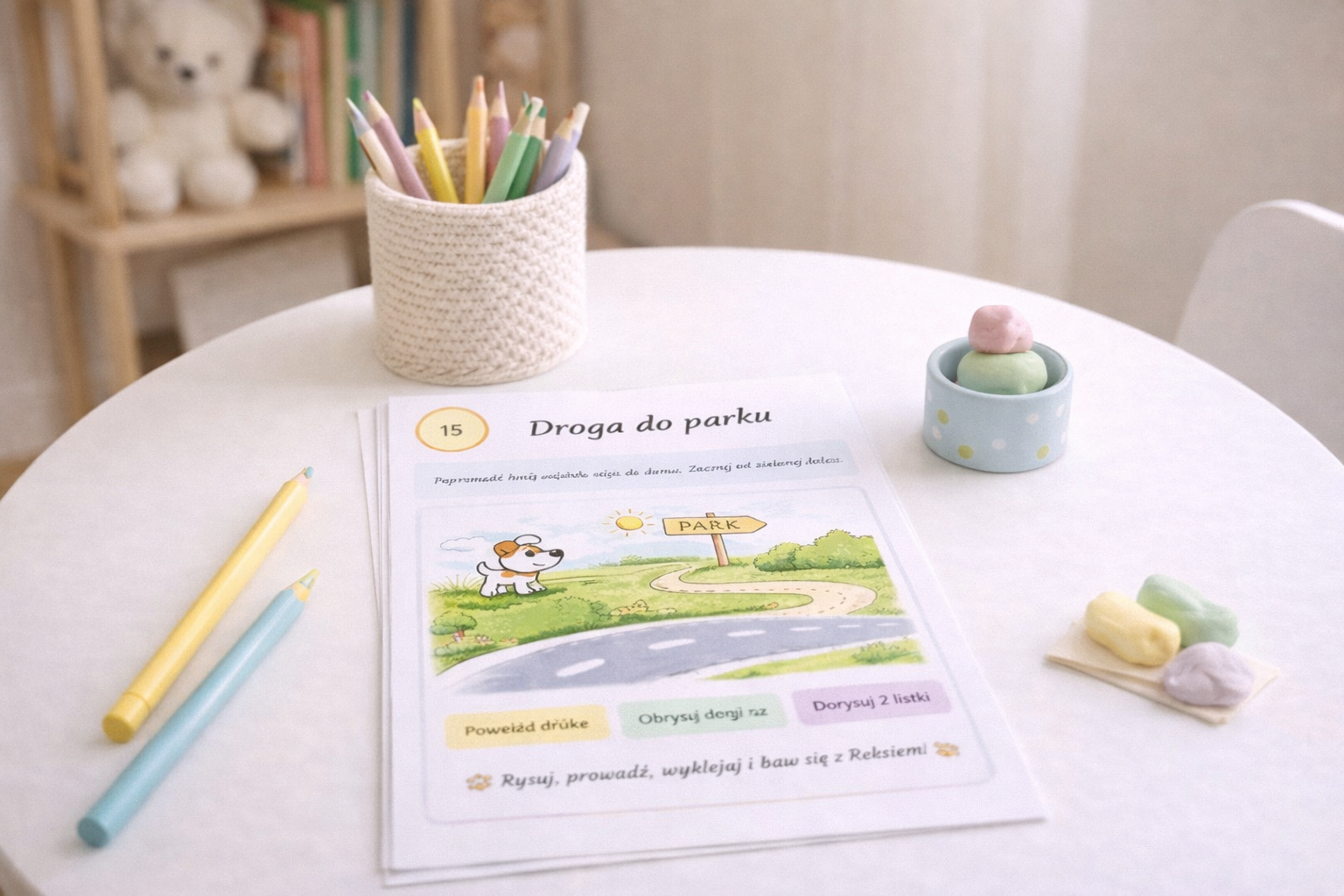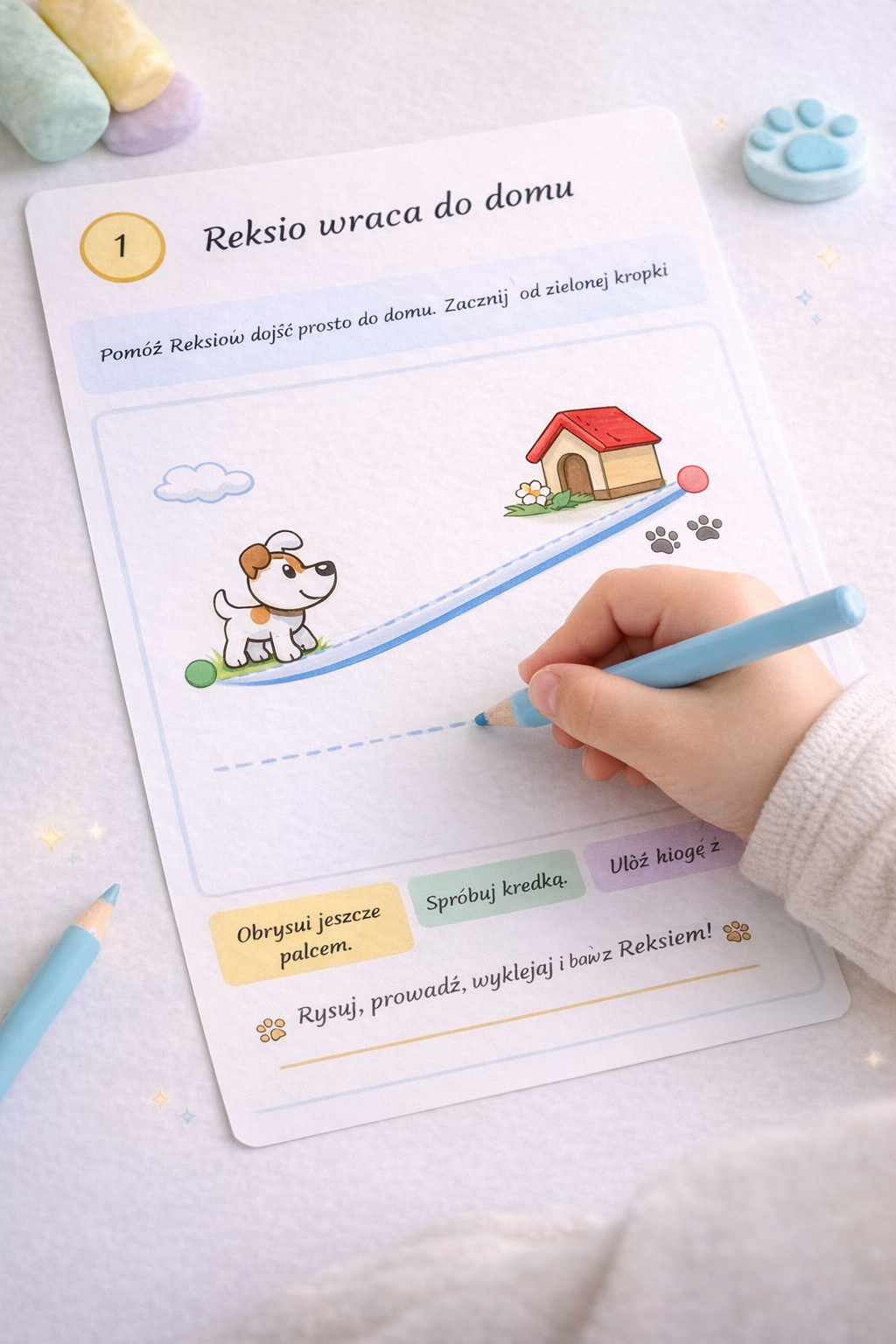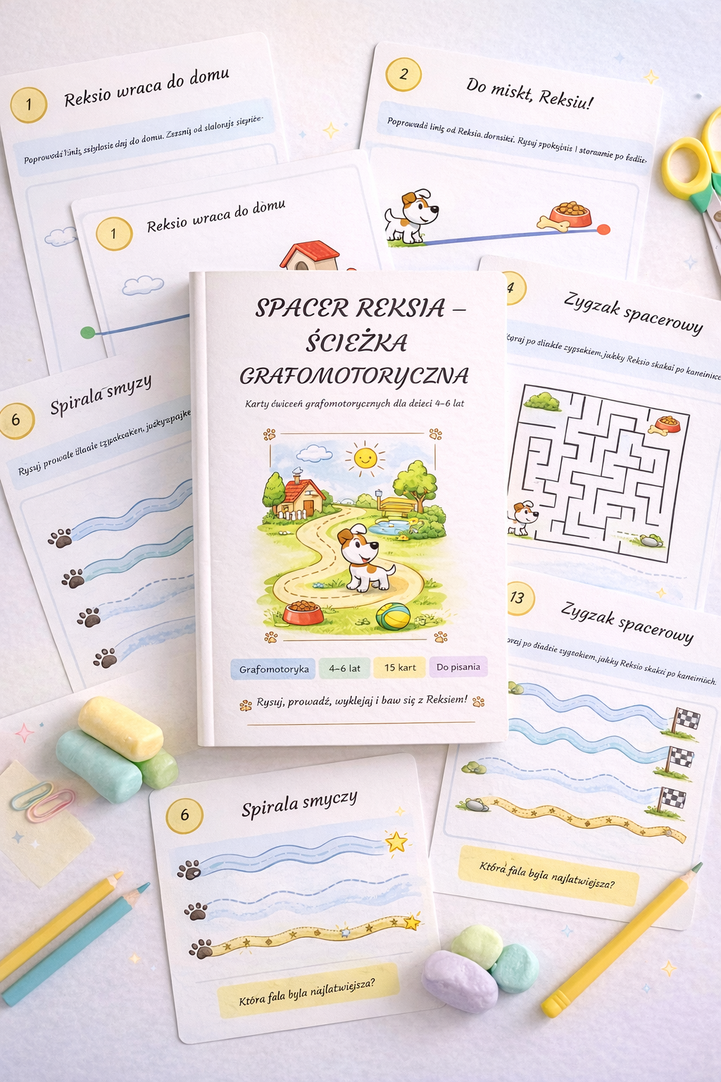 Poznaj Spacer Reksia – zestaw angażujących kart grafomotorycznych, które dzieci po prostu UWIELBIAJĄ! 🐾