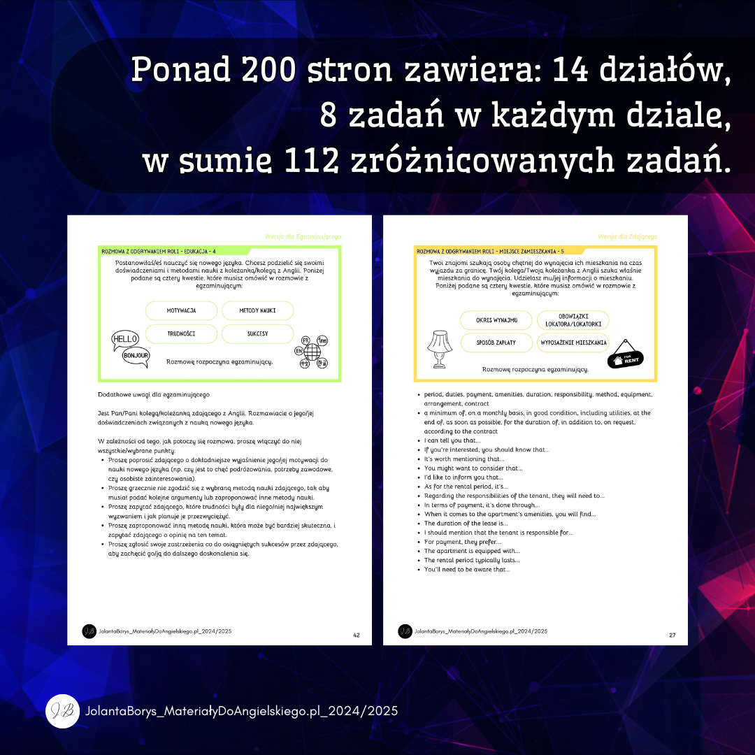Z przyjemnością przedstawiam Wam część 1, poświęconą zadaniu 1: rozmowa z odgrywaniem roli. Ten ebook to idealne narzędzie do efektywnego przygotowania uczniów do egzaminu ustnego, z uwzględnieniem najnowszych wytycznych egzaminacyjnych.