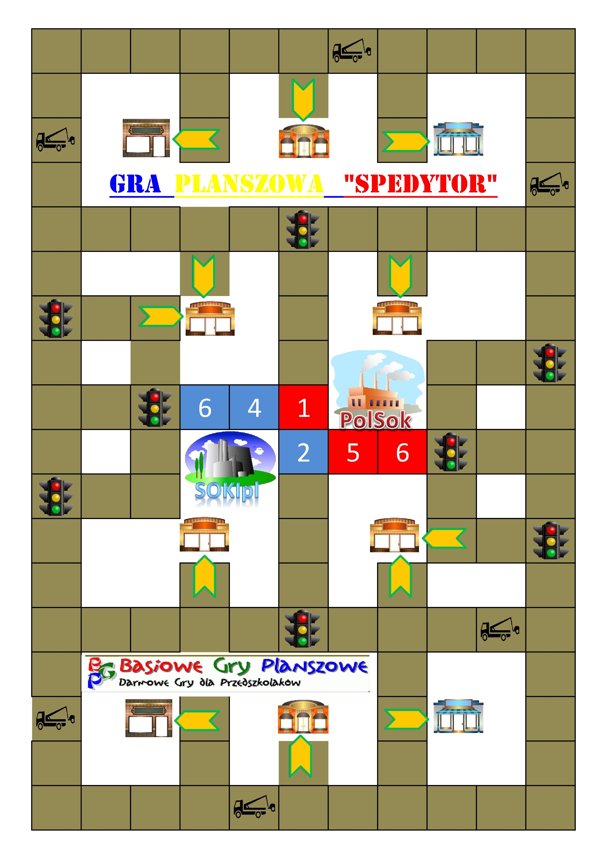 Spedytor to gra osadzona w świecie producentów soków. Dwóch graczy próbuje przejąć kontrolę nad dostawami do lokalnych sklepów. Komu uda się być szybszym od konkurencji? Gra przeznaczona dla starszych dzieci.