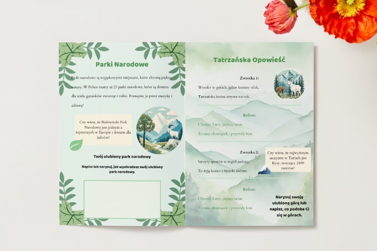 ✅ Piosenek o ekologii i przyrodzie – inspirowane parkami narodowymi, ochroną zwierząt i codzienną ekologią.