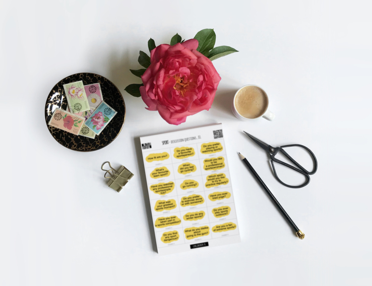A na każdym z nich znajduje się jedno pytanie do dyskusji z tematu 'sport’. Żadne z pytań się nie powtarza. Za to każde odnosi się do osobistych doświadczeń lub opinii.