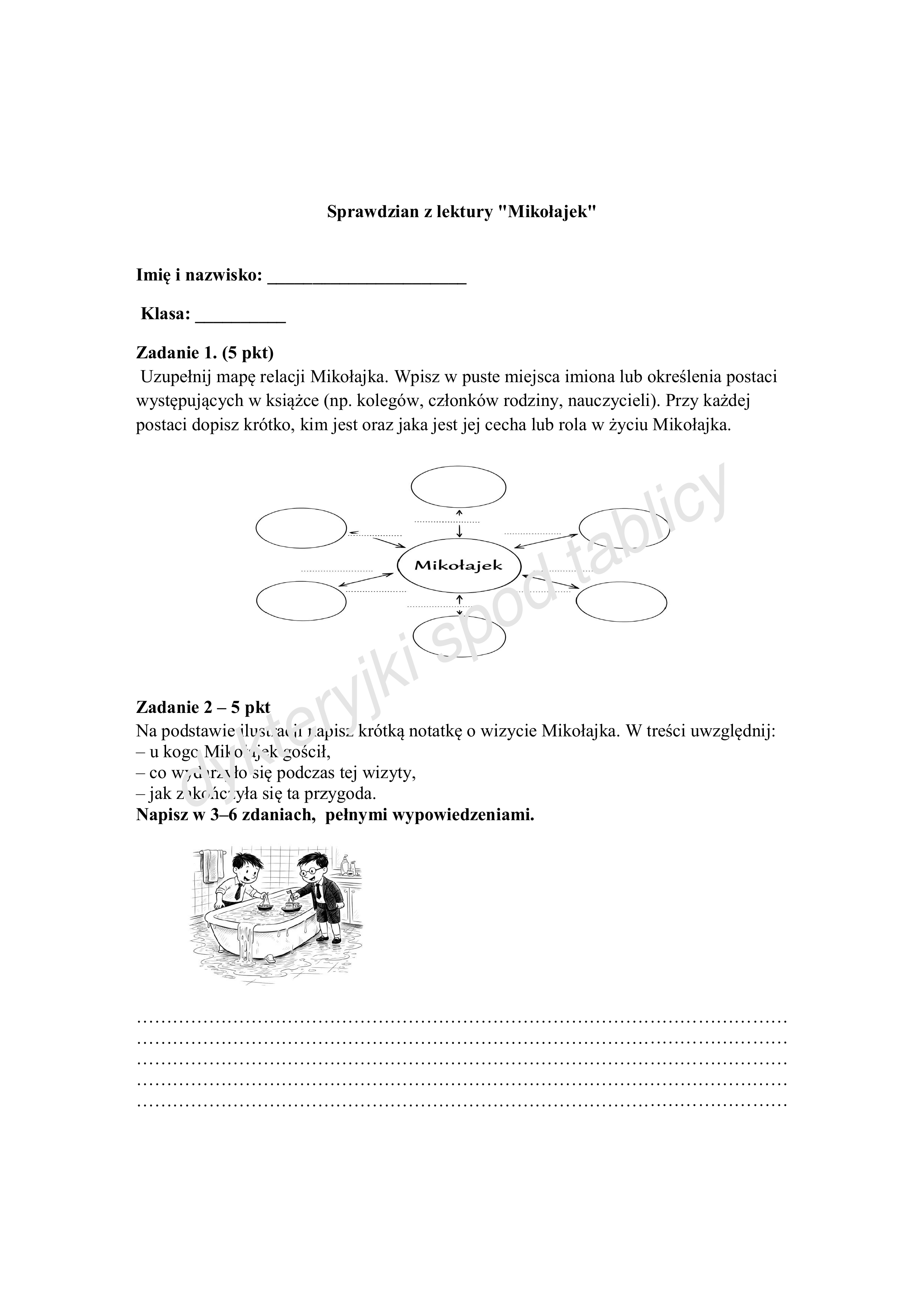 Sprawdzian ze znajomości lektury pt. "Mikołajek". 3 strony