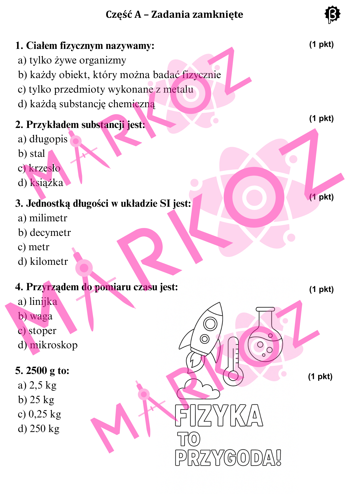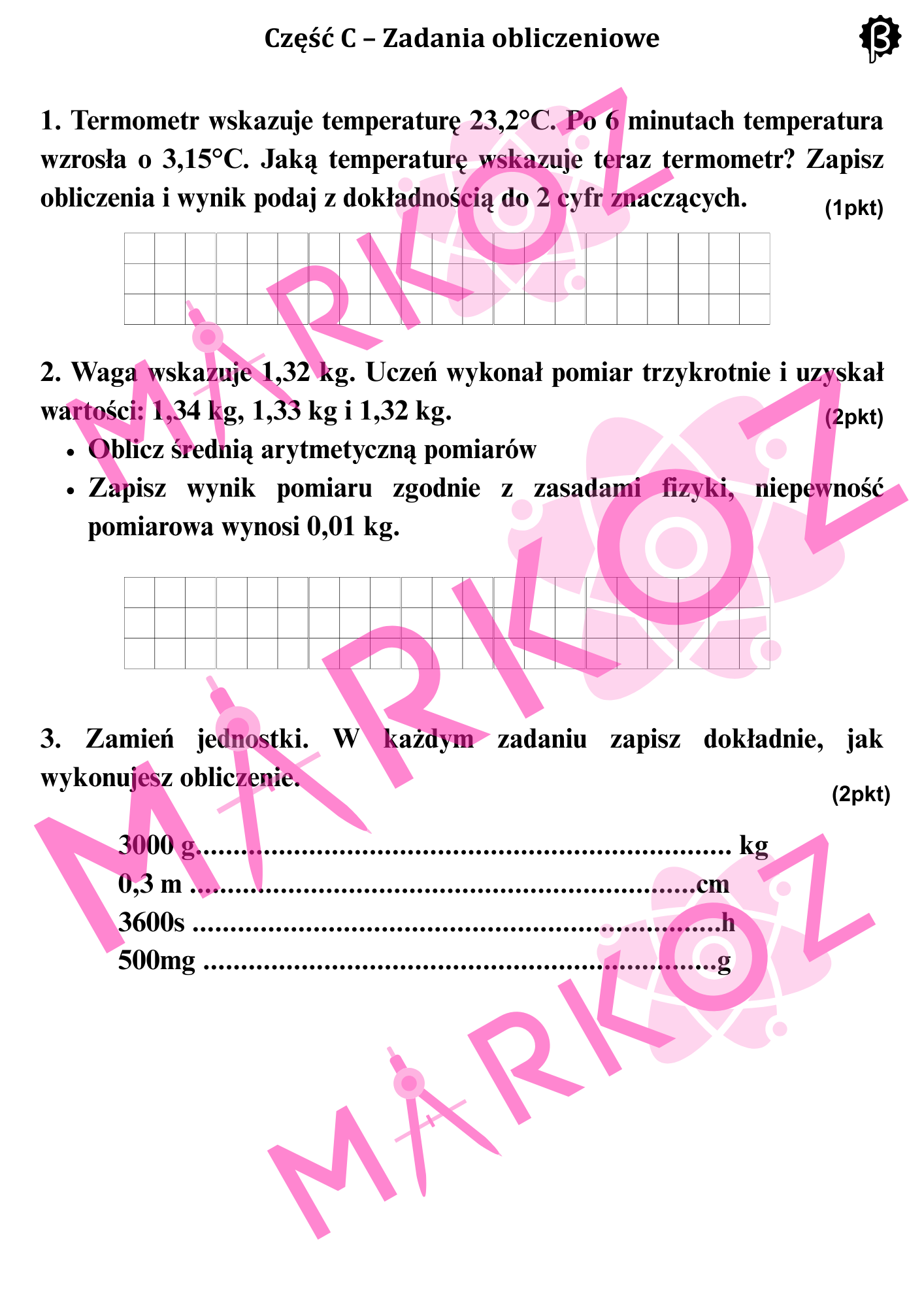 Zadania są zamknięte, otwarte i obliczeniowe, dzięki czemu sprawdzian jest kompletny i zgodny z wymaganiami podstawy programowej.