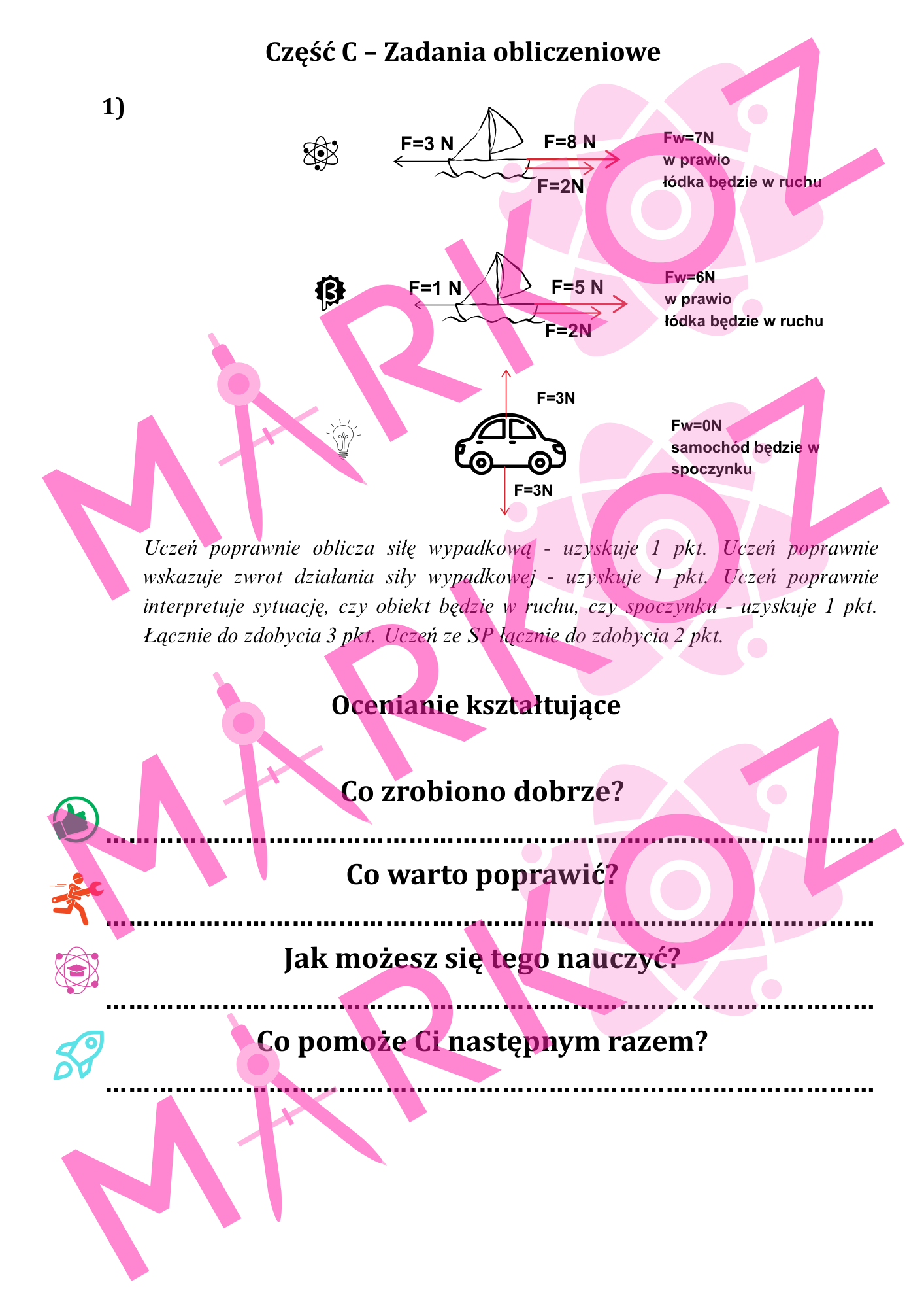 Zadania są zamknięte, otwarte i obliczeniowe, dzięki czemu sprawdzian jest kompletny i zgodny z wymaganiami podstawy programowej.
