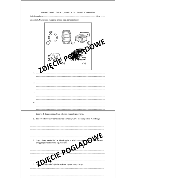 Sprawdzian składający się z pytań otwartych (2 strony).