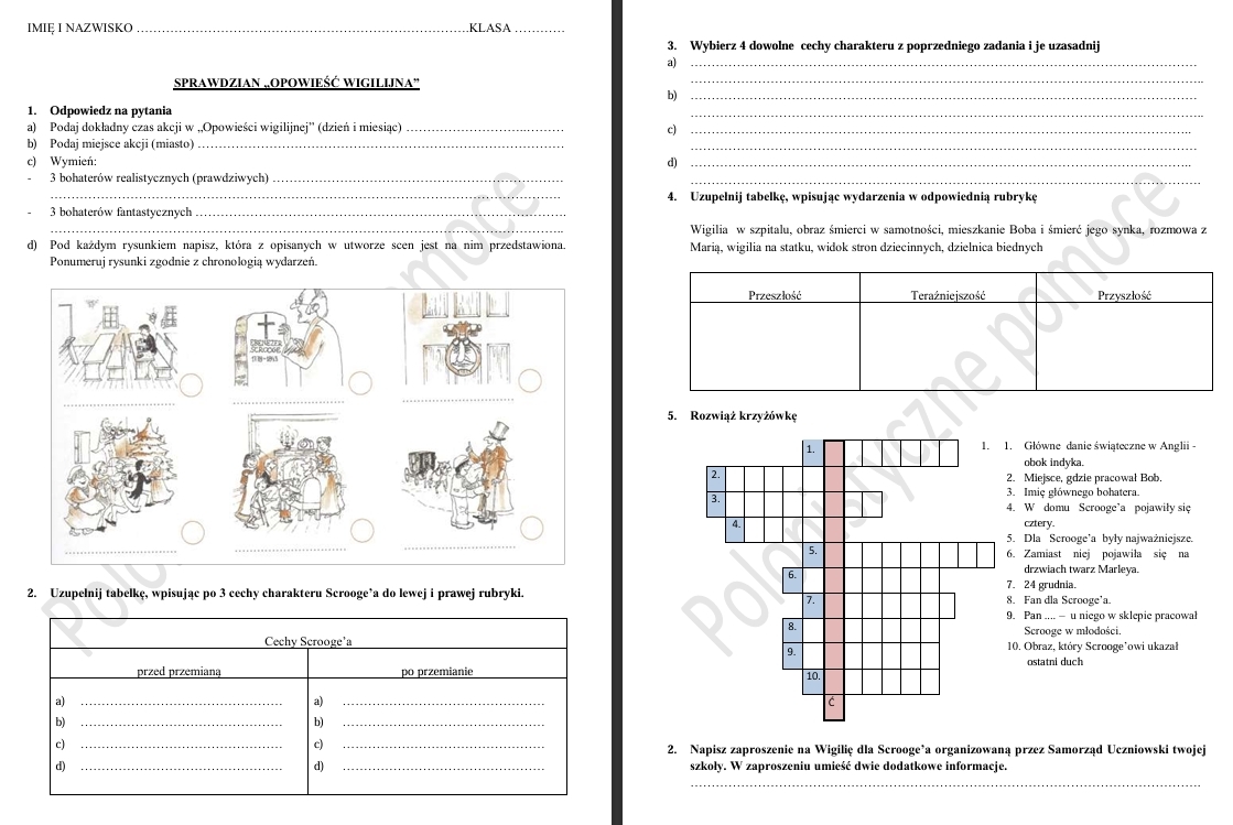 Sprawdzian, który przeprowadza się po omówieniu lektury z uczniami. Podejmuje takie zagadnienia jak: elementy świata przedstawionego, wydarzenia, określanie cech głównego bohatera, umiejętność uzasadniania cech charakteru, krzyżówka ze znajomości lektury, umiejętność pisania zaproszenia na wzór zaproszenia redagowanego na egzaminie ósmoklasisty.