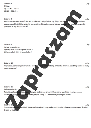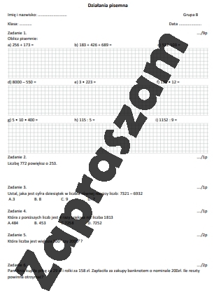Sprawdzian / powtórzenie wiadomości działania pisemne