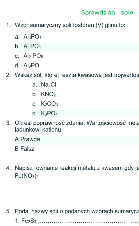 Zapraszam do pobrania sprawdzianu z działu sole.