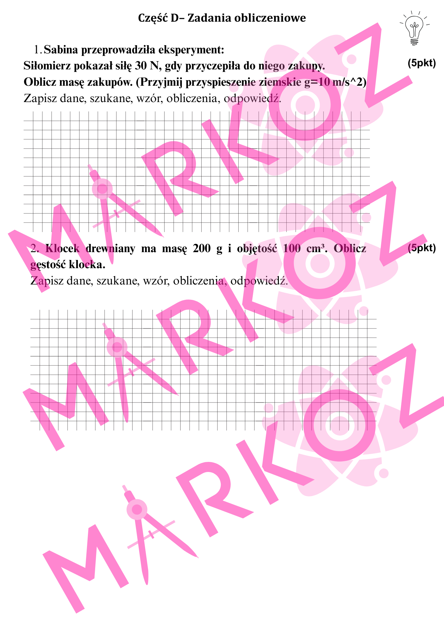 Zadania są zamknięte, otwarte i obliczeniowe, dzięki czemu sprawdzian jest kompletny i zgodny z wymaganiami podstawy programowej.