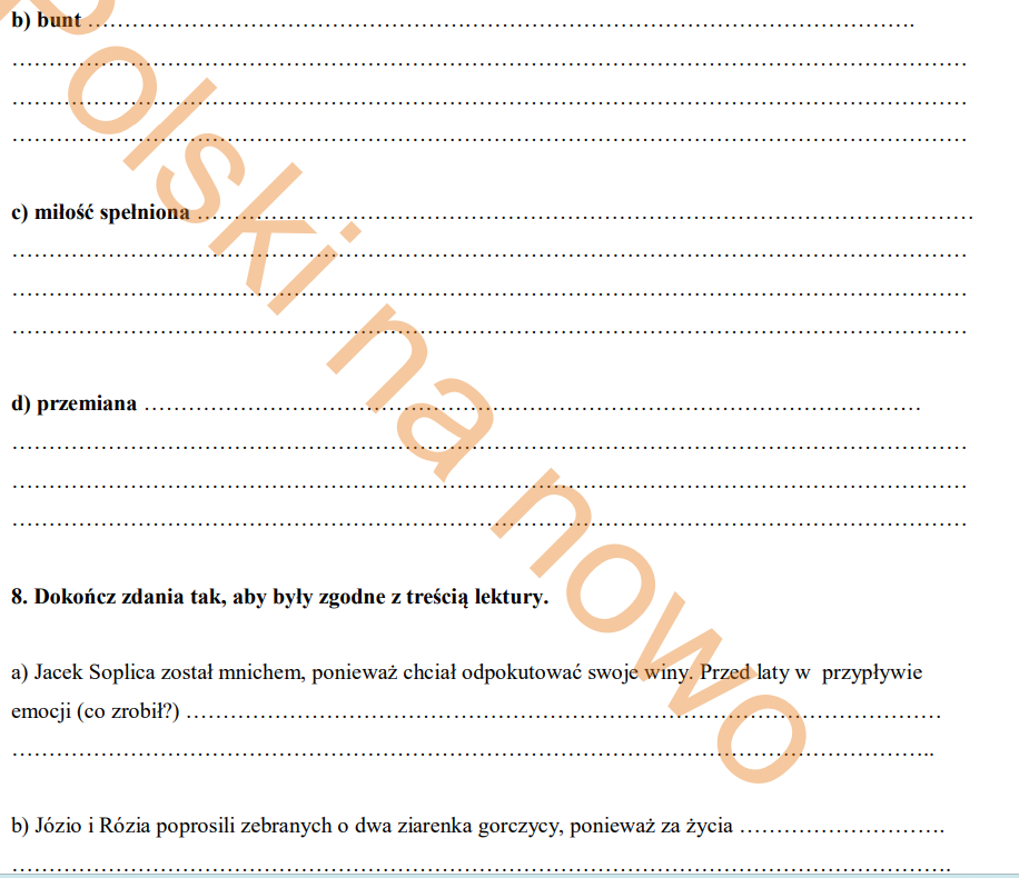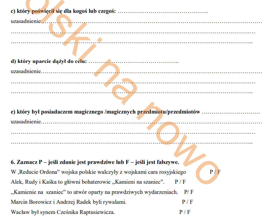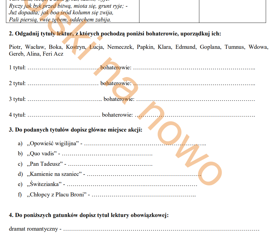 Sprawdzian z lektur dla klas 8. Idealna powtórka przed egzaminem. Oprócz treści lektur obowiązkowych z klas 4-6 i 7-8 oraz obecnych w nich motywów, sprawdzana jest umiejętność argumentowania i rozpoznawania lektur po elementach graficznych.