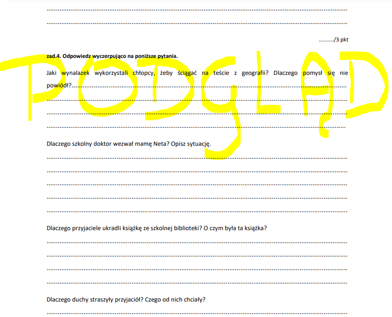Zadanie 4. - Pytania otwarte sprawdzające wiedzę z lektury (5 pytań).