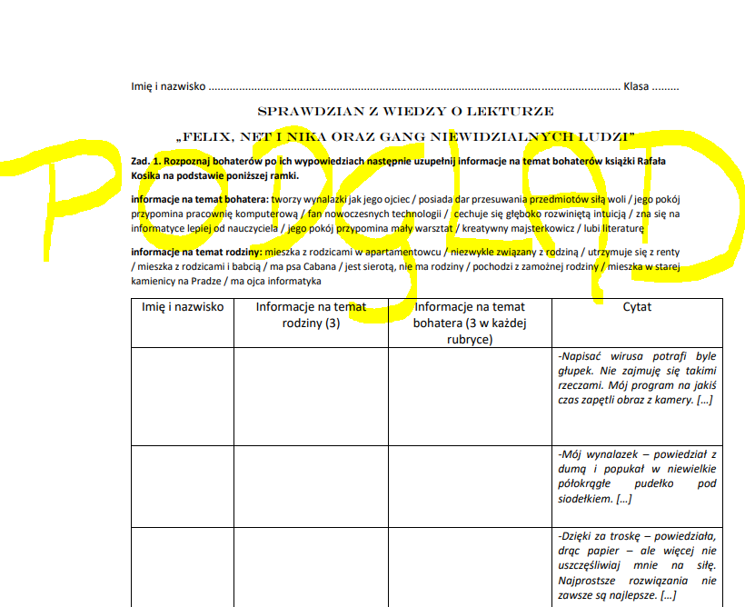 Test otwarty sprawdzający wiedzę z książki Rafała Kosika. Składa się z 4 zadań.