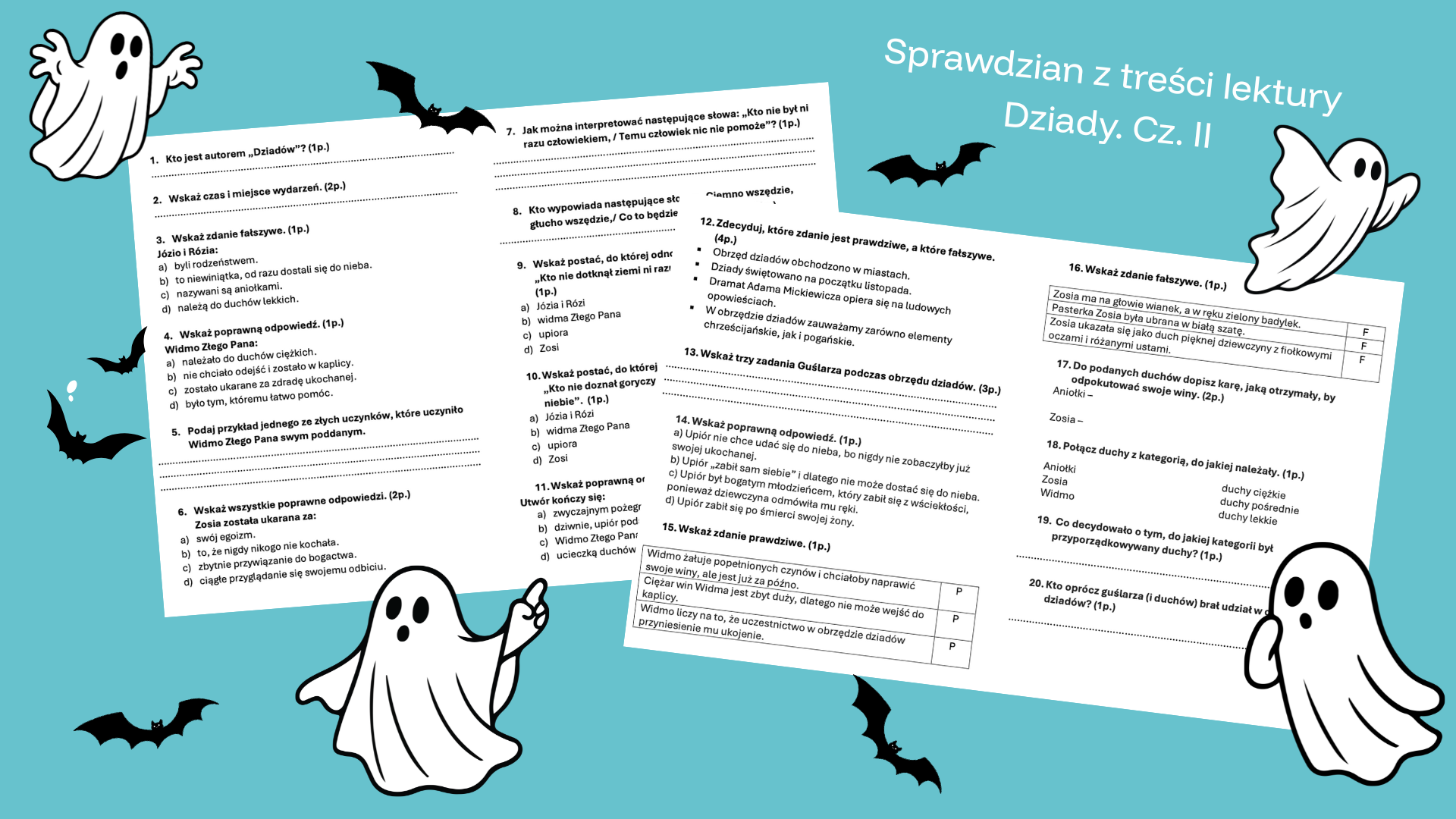 Materiał został zapisany w pliku pdf. Zawiera pytania zamknięte i otwarte - łącznie 2 strony.