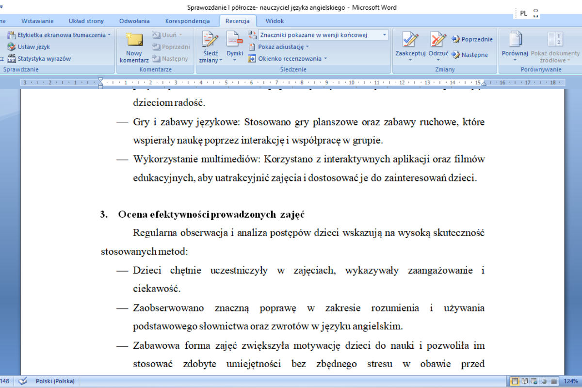 Sprawozdanie nauczyciela przedszkola z pracy dydak…